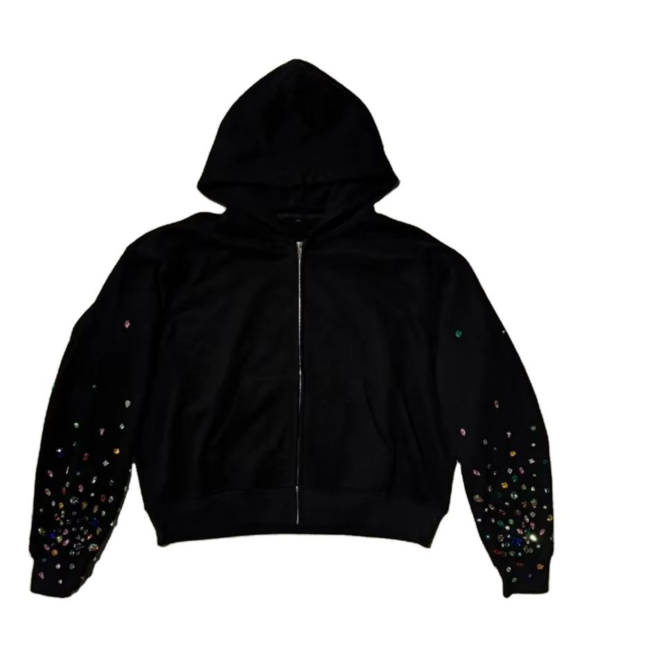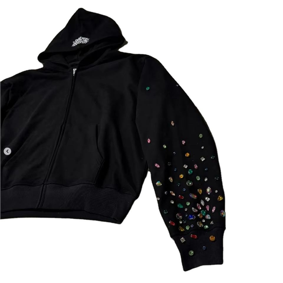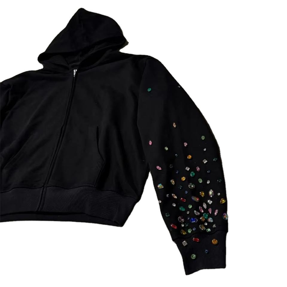 เสื้อฮู้ดผู้ชายประดับด้วยอัญมณีหลากสีสัน เสื้อสเวตเชิ้ตแฟชั่นสวมหัว สไตล์ลำลอง สตรีทแวร์ ทรงหลวม สวมใส่สบาย