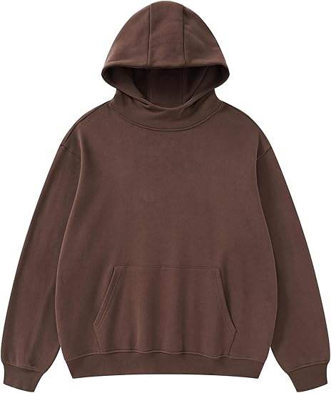 เสื้อฮู้ดโอเวอร์ไซส์สำหรับผู้ชายและผู้หญิง, เสื้อสเวตเตอร์มีฮู้ดคอตตอนโพลีปล่อยไหล่สีน้ำตาล