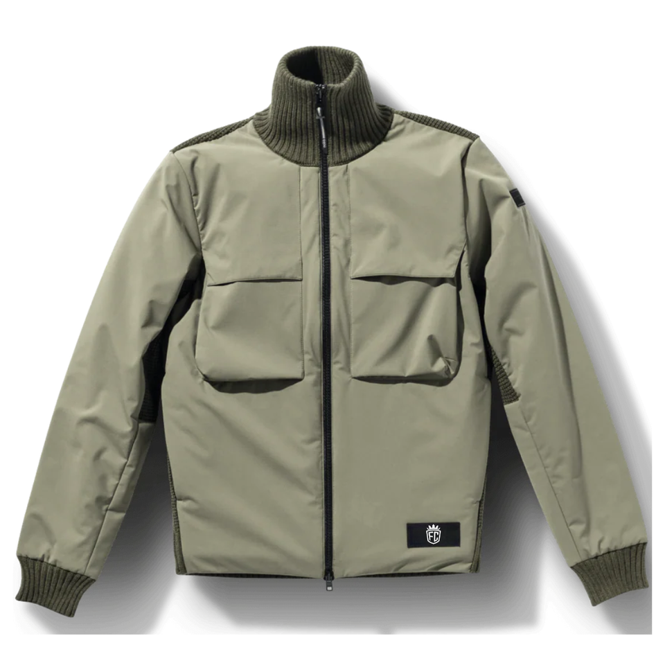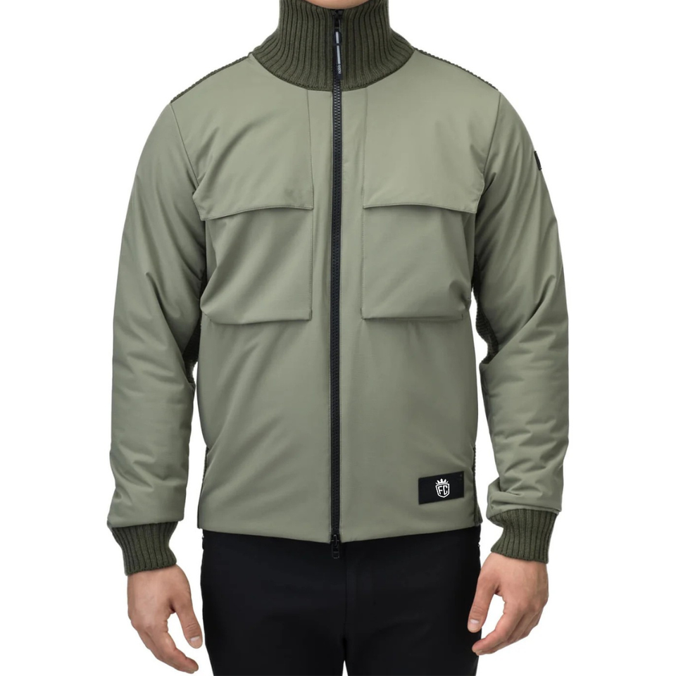 เสื้อแจ็คเก็ตผู้ชายแบบไฮบริด แนวแทคติคอล ซิปปิด หลายกระเป๋า ด้านหน้าเป็นผ้าถัก สไตล์ลำลองสมาร์ท