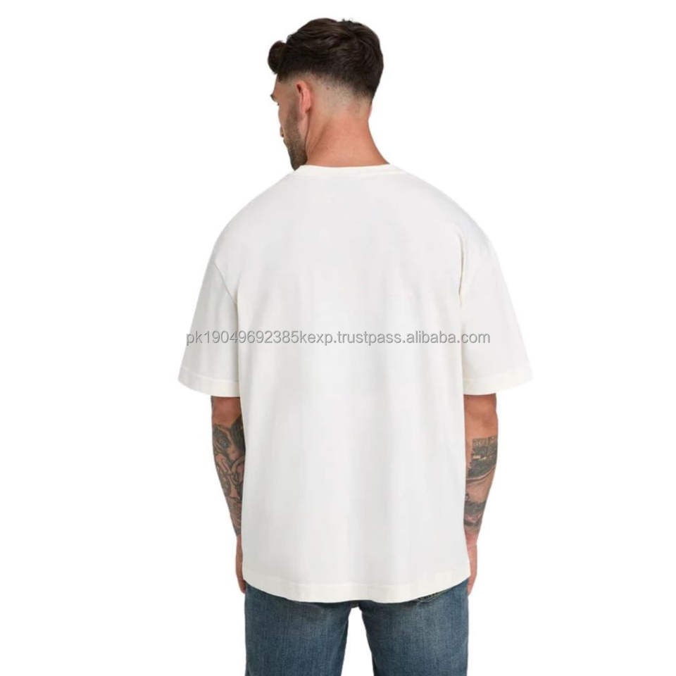 เสื้อยืดโอเวอร์ไซส์สีไอวอรี่สำหรับผู้ชาย ผ้าฝ้าย 100% 190 GSM สไตล์สตรีทแวร์ ลายพิมพ์โลโก้ด้านหน้าและด้านหลัง ทรงหลวม ไหล่ตก