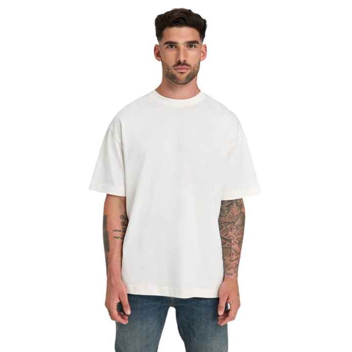เสื้อยืดผ้าฝ้ายโอเวอร์ไซส์สำหรับผู้ชาย, เสื้อยืดผ้าฝ้าย100% 190แกรมเสื้อยืดพิมพ์ลายโลโก้ด้านหน้าด้านหลังปล่อยไหล่ลงแบบผ่อนคลาย