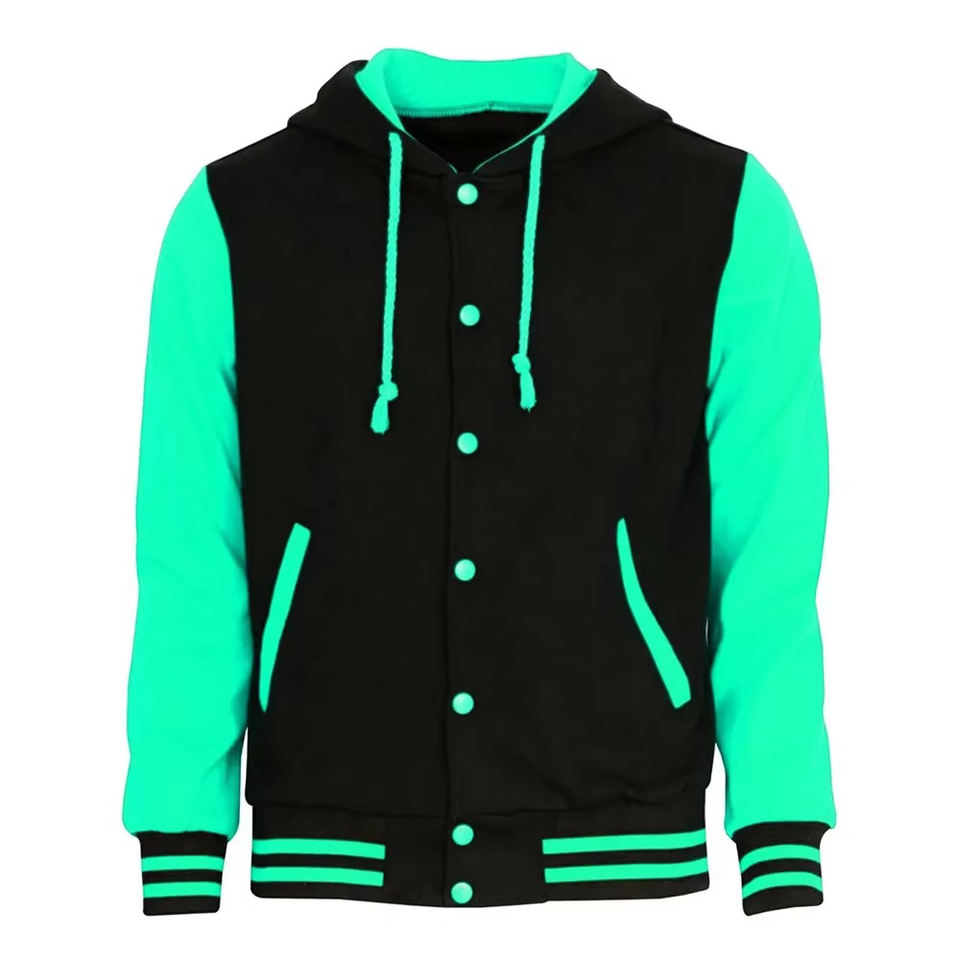 แจ็กเก็ตสีดำสำหรับผู้ชายเสื้อแจ็คเก็ตมีฮู้ดสีสดใสแขนเสื้อสีตัดกันนุ่มสบายๆสไตล์สตรีทแวร์ตัวอักษรแบบคลาสสิก
