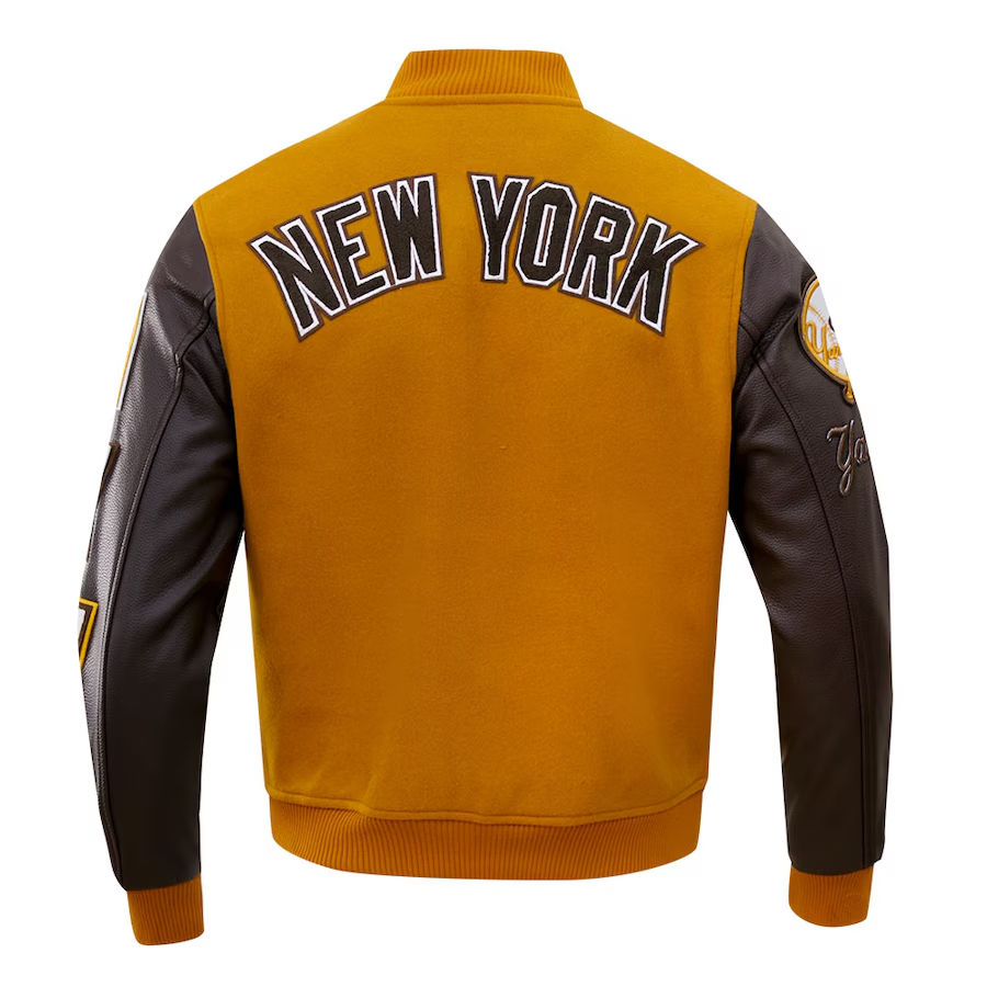แจ็กเก็ตสำหรับผู้ชายแจ็คเก็ตเบสบอลทีมตัวแทนทหารแจ็คเก็ตหนังแท้แขนเสื้อหนังแท้เสื้อบอมเบอร์