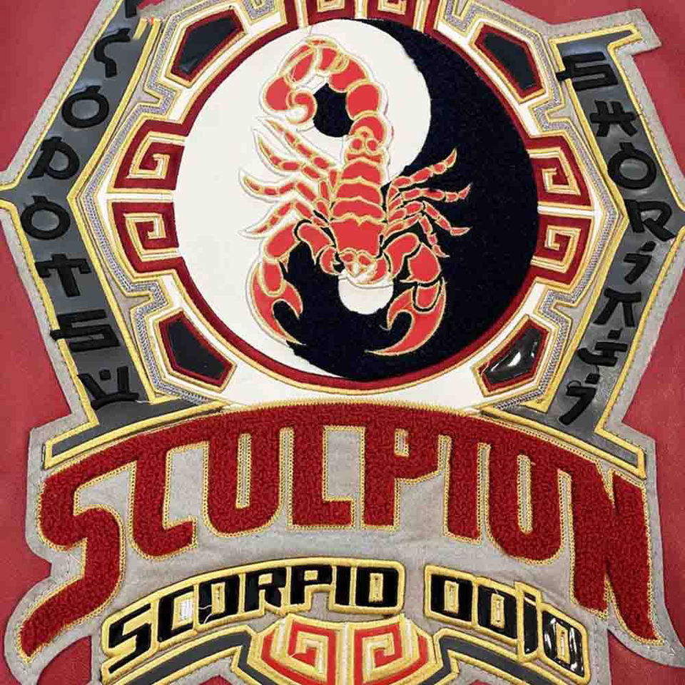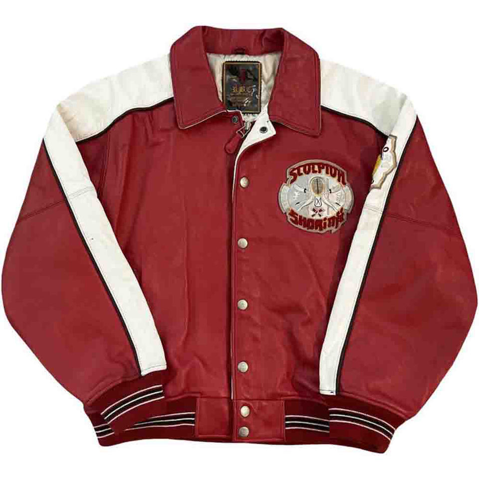 เสื้อแจ็กเก็ตหนังสไตล์วินเทจสำหรับผู้ชายเสื้อแจ็กเก็ตหนังสไตล์บอมเบอร์ปักลายแมงป่องศิลปะการต่อสู้