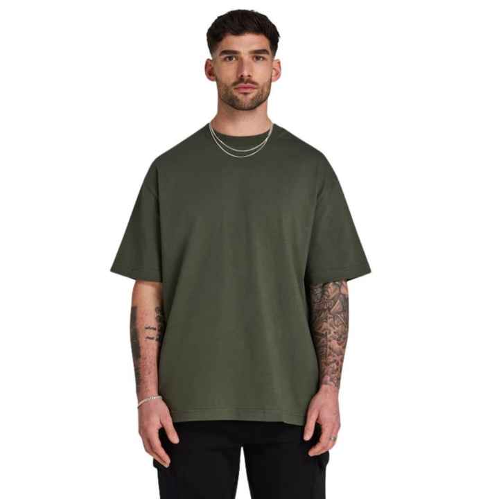 เสื้อยืดผ้าคอตตอนสำหรับผู้ชาย, เสื้อยืดผ้าฝ้ายโอเวอร์ไซซ์100% 190แกรมเสื้อยืดพิมพ์ลายโลโก้ด้านหน้าหลังปล่อยไหล่ใส่สบาย