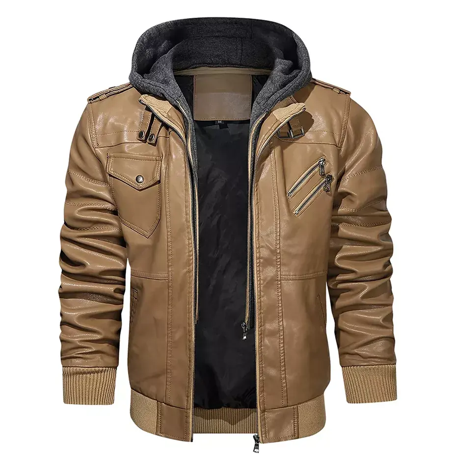 Mens Leather Hoodies Casual Leather Jackets For Wholesale Buyers Built For Cold Weather With Clean Finish And Relaxed Fit