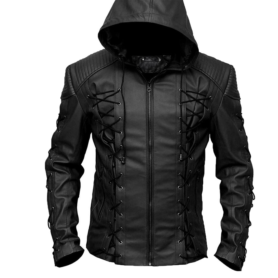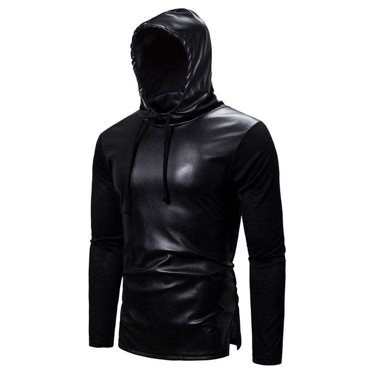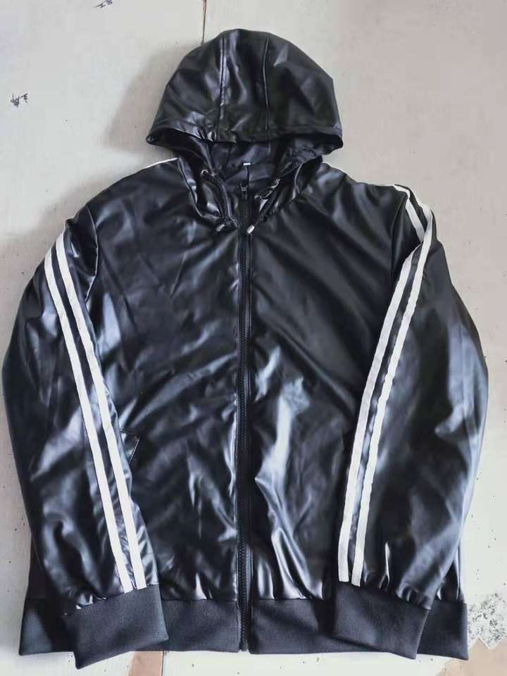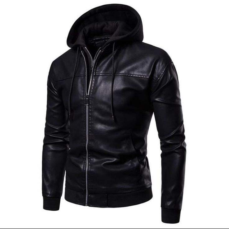แจ็คเก็ตลำลองแฟชั่นหนังมีฮู้ดสำหรับผู้ชายสำหรับสวมใส่ในชีวิตประจำวันที่มีพื้นผิวหนังเรียบและสวมใส่สบาย