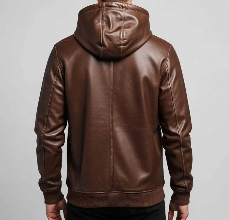 เสื้อฮู้ดหนังผู้ชาย สไตล์ลำลองทันสมัย สำหรับขายส่ง ให้สัมผัสนุ่มสบายเหมือนหนังแท้ และเหมาะสำหรับฤดูหนาว