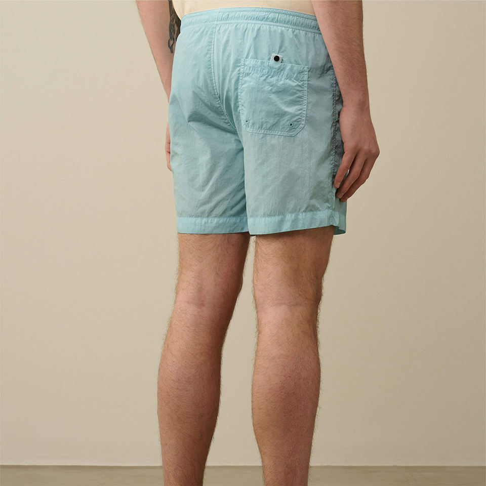 Mens Light Blue 100% Polyester High Street Solid Eco-Friendly Summer Shorts Elastic Waist Side Pockets Casual Wear Anti-Wrinkle