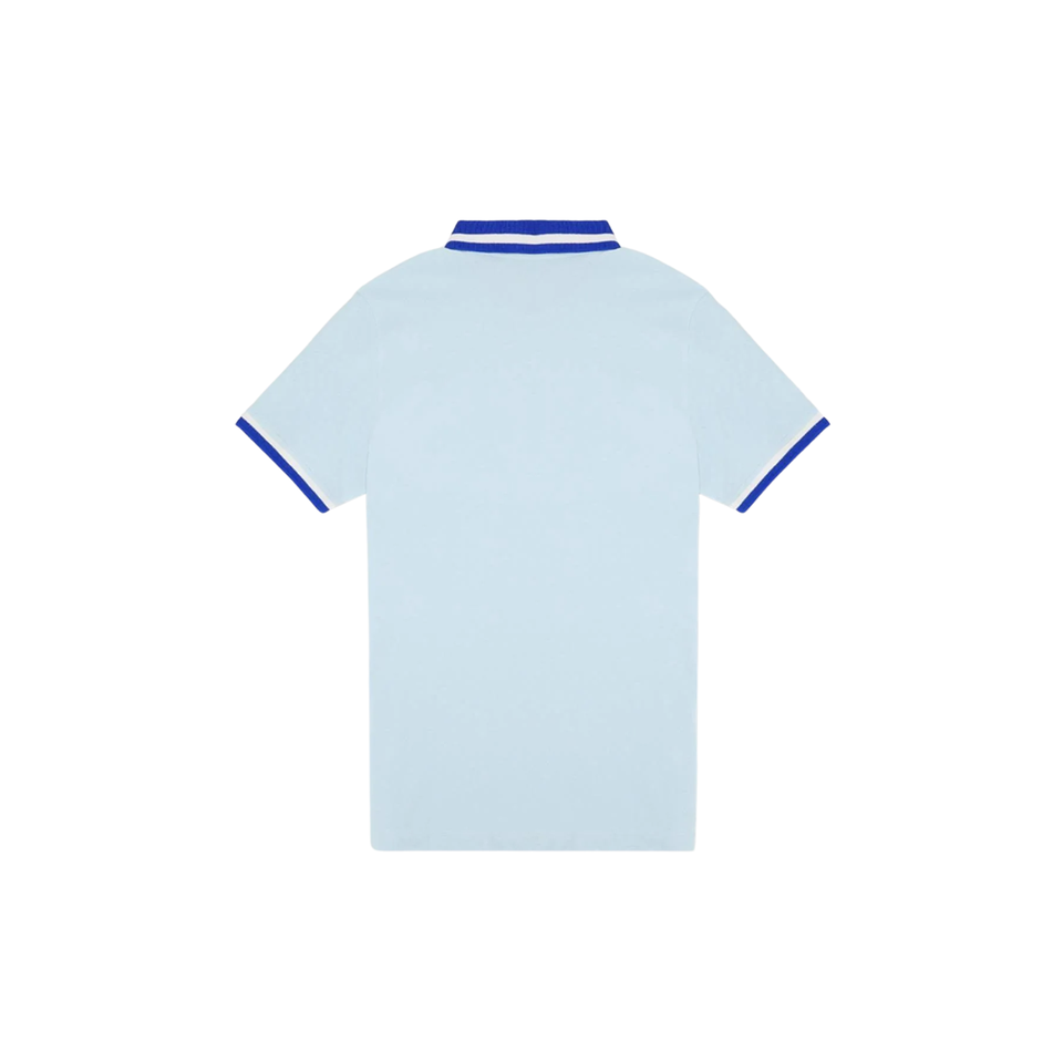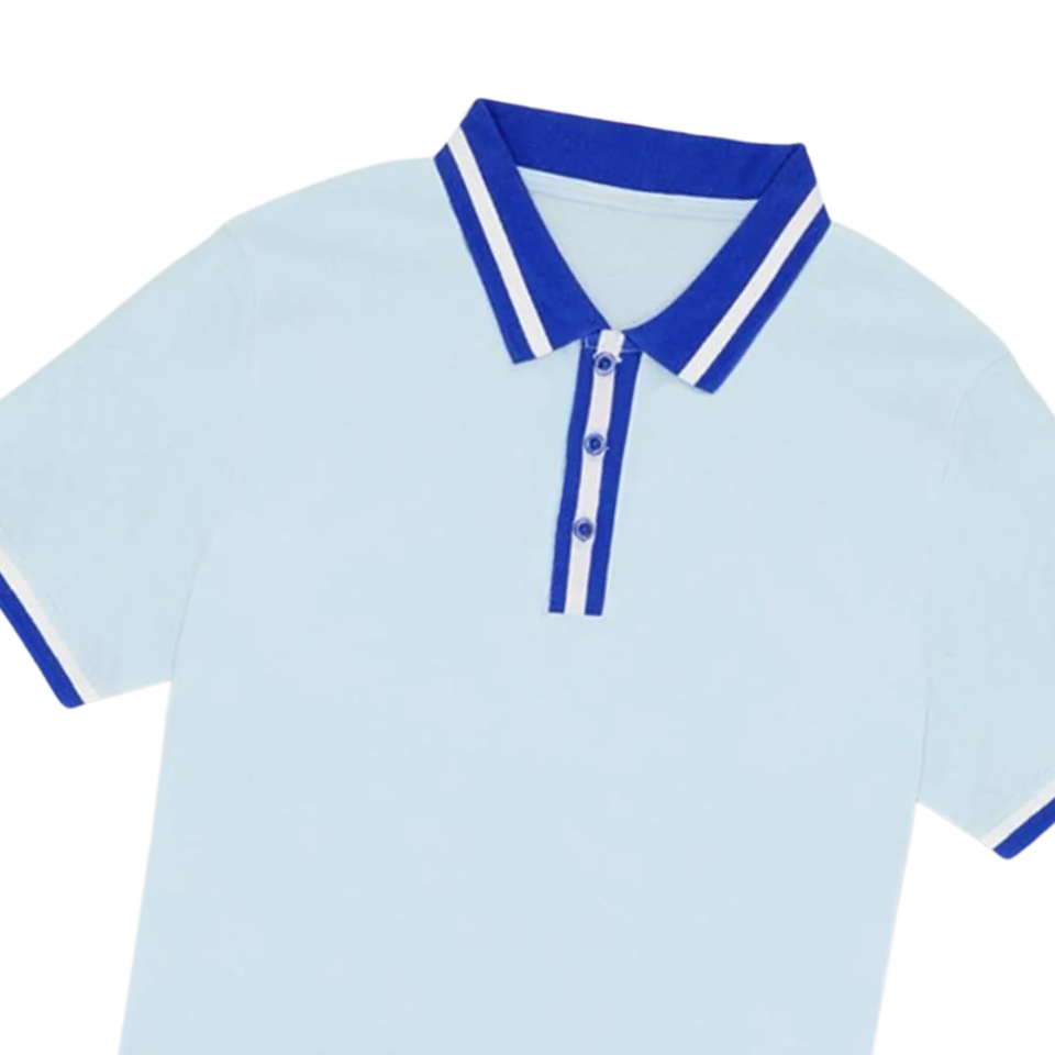 Mens Light Blue Polo Shirt with Blue Striped Collar Comfortable Cotton Casual Wear Stylish Short Sleeve Polo Trendy Fashion