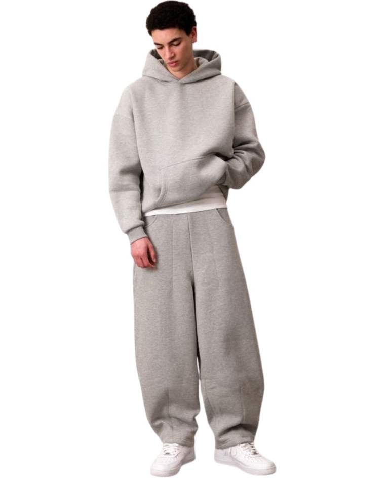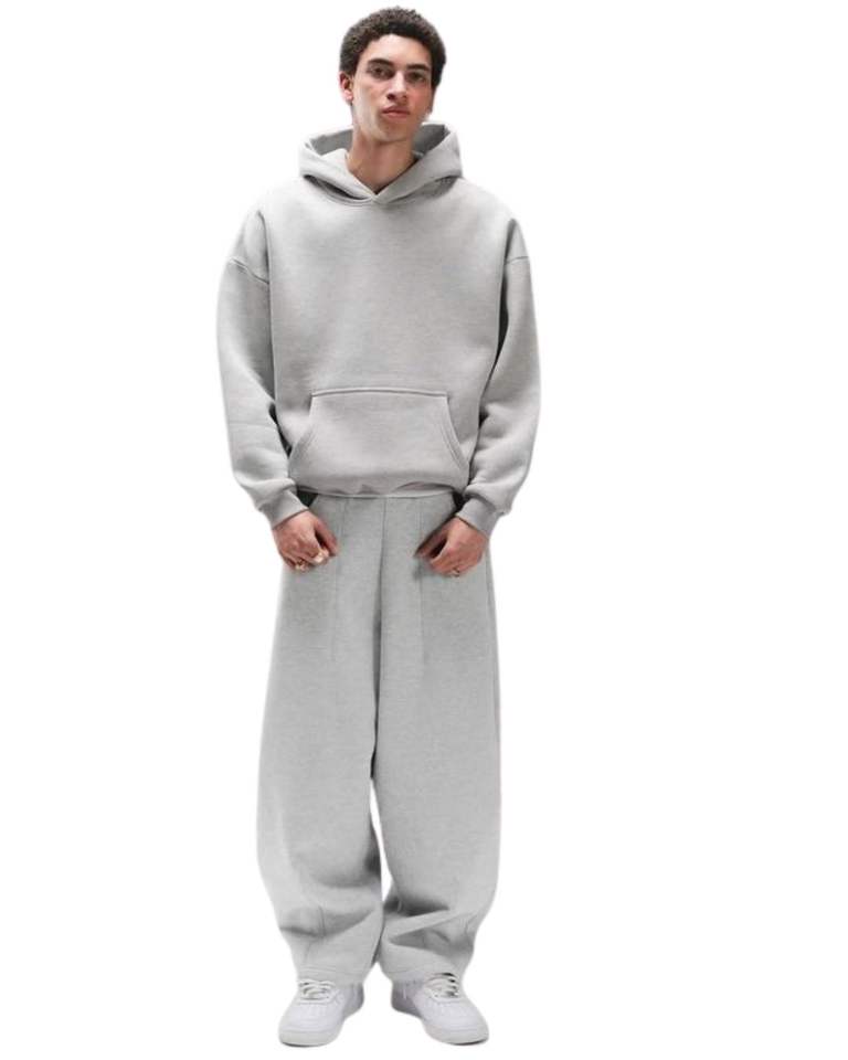 ชุดเซ็ตเสื้อฮู้ดดี้ผ้าฟลีซสีเทาอ่อนสำหรับผู้ชาย และกางเกงจ็อกเกอร์ทรงหลวม สไตล์ลำลองสำหรับฤดูหนาว เสื้อฮู้ดแบบสวมหัว กางเกงขายาว สตรีทแวร์