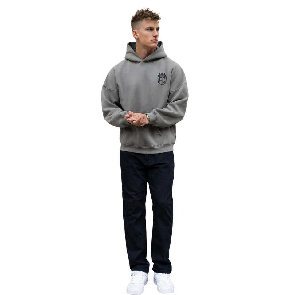 เสื้อฮู้ดดี้ผู้ชายสีเทาอ่อนทรงโอเวอร์ไซส์ ผ้าคอตตอน 50% โพลีเอสเตอร์ 50% ทรงหลวมแบบดรอปโชว์เดอร์ สไตล์สตรีทแวร์ ใส่สบาย เหมาะสำหรับฤดูหนาว
