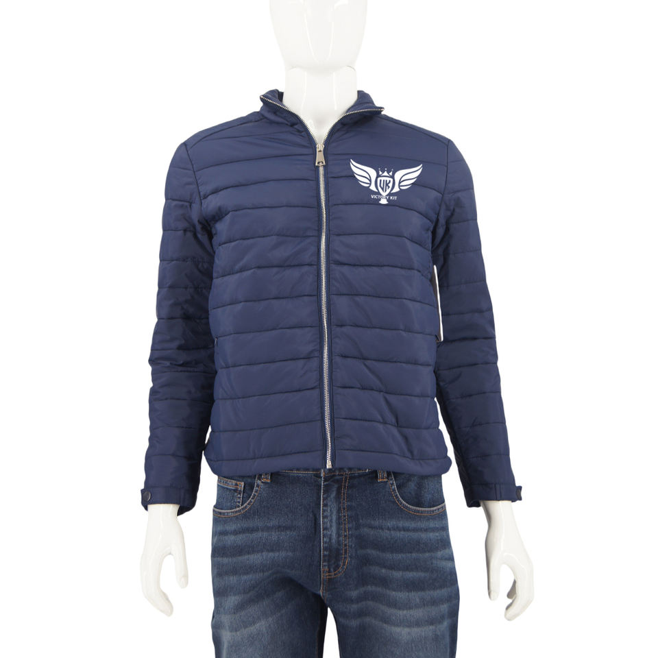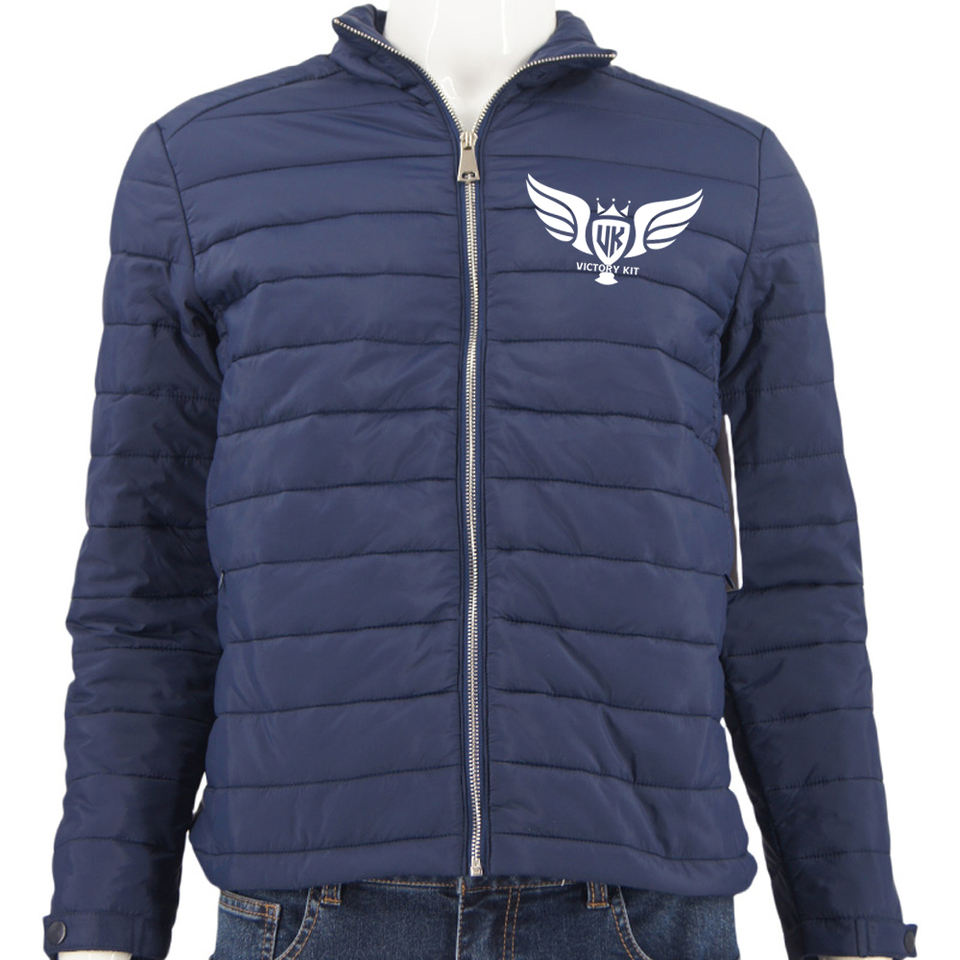 เสื้อแจ็คเก็ตพัฟเฟอร์น้ำเงินกรมท่าสำหรับผู้ชาย น้ำหนักเบา แบบมีซิป คอตั้ง สำหรับฤดูหนาว ให้ความอบอุ่น สวมใส่สบาย