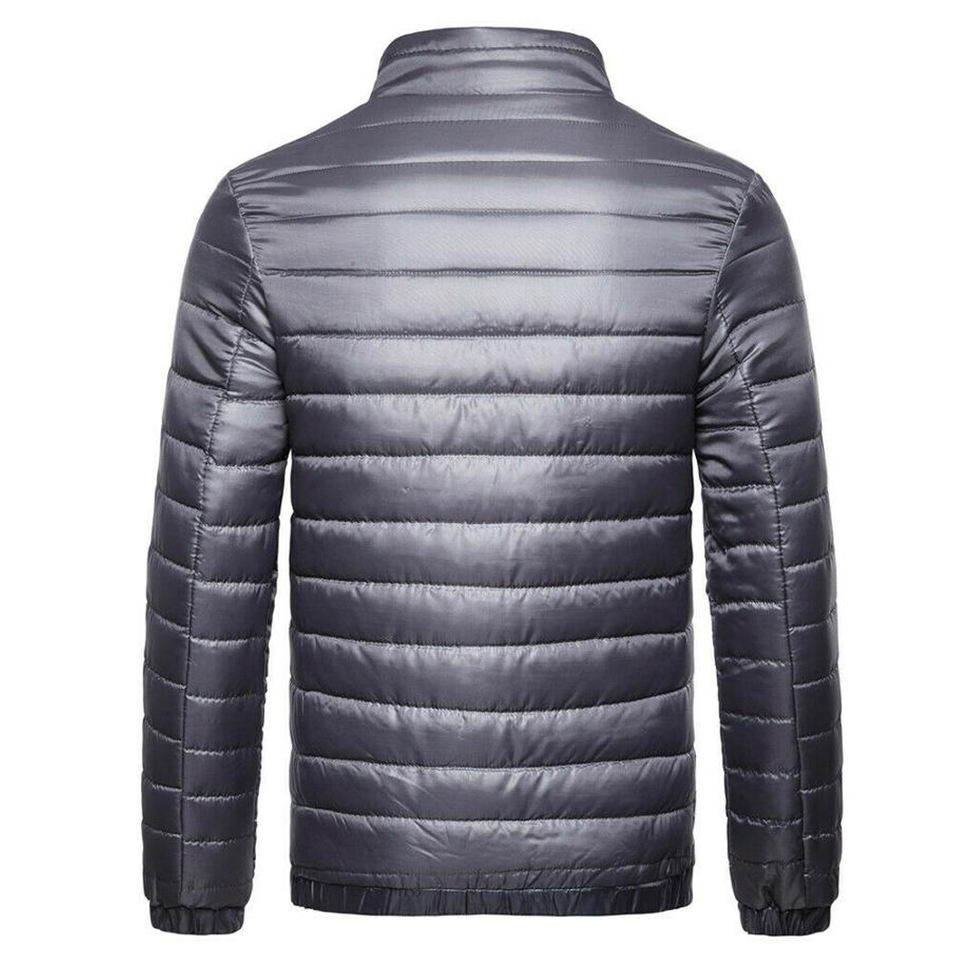 เสื้อแจ็คเก็ตบุใยสังเคราะห์น้ำหนักเบาสำหรับผู้ชาย คอตั้ง ซิปหน้า เสื้อกันหนาวทรงเข้ารูป กันลม สไตล์เสื้อโค้ทขนเป็ด