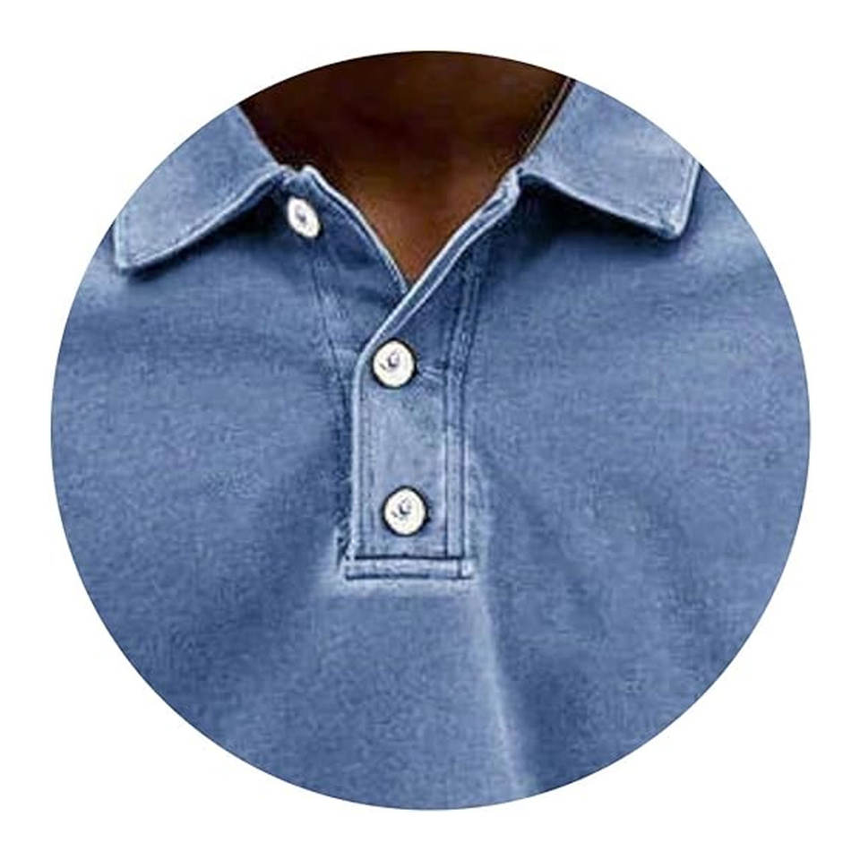 เสื้อโปโลแขนยาวผู้ชาย เสื้อยืดสไตล์วินเทจแบบซักฟอก เสื้อโปโลติดกระดุมลำลองสไตล์เรโทร เสื้อกอล์ฟคอปกน้ำหนักเบา สวมใส่สบาย