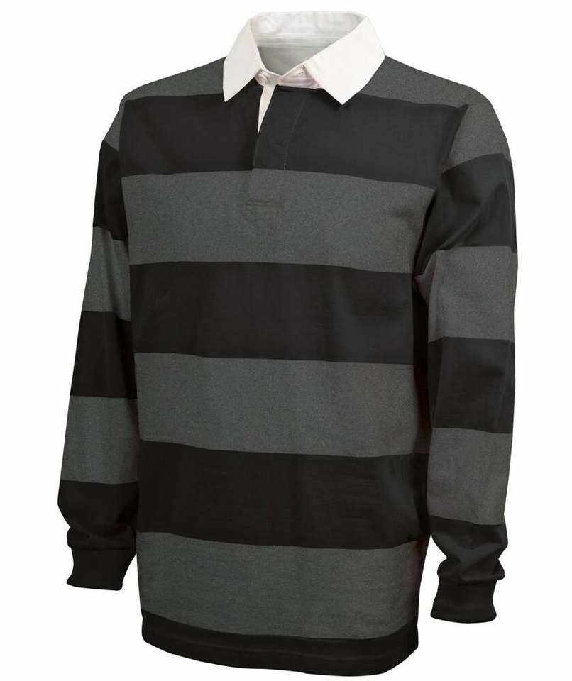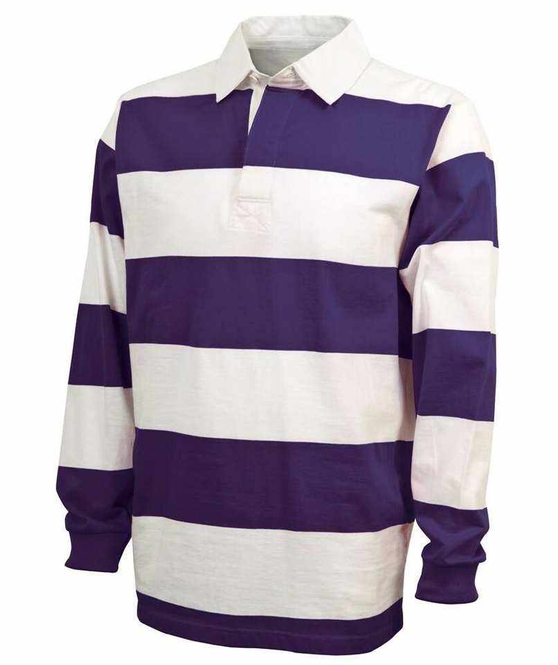 เสื้อโปโลรักบี้แขนยาวผู้ชาย ลายทางแนวนอนแบบโดดเด่น คอปกสีขาว ผ้าฝ้ายผสมลำลอง แฟชั่นเสื้อผ้าผู้ชาย
