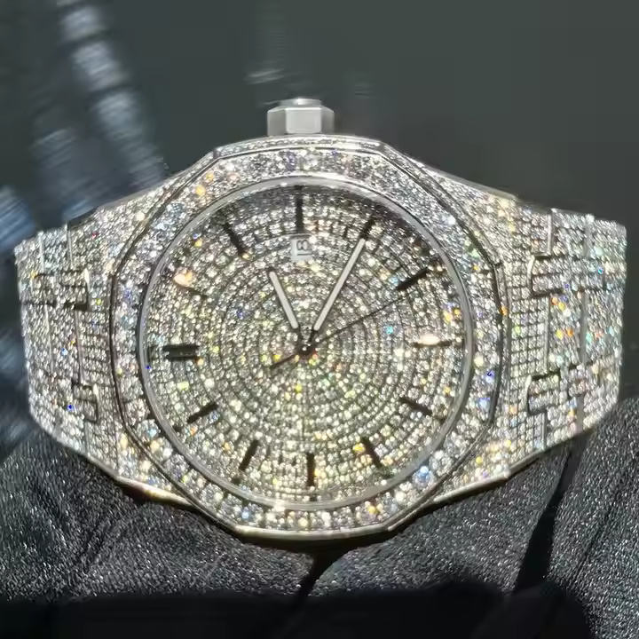 นาฬิกาข้อมือควอตซ์อะนาล็อกแฟชั่นหรูสำหรับผู้ชาย สายสแตนเลส ตัวเรือนอัลลอยด์ กระจกหน้าปัดประดับเพชรโมอิสซาไนต์แท้ ขนาดหน้าปัด 5 มม. ดีไซน์ทันสมัย