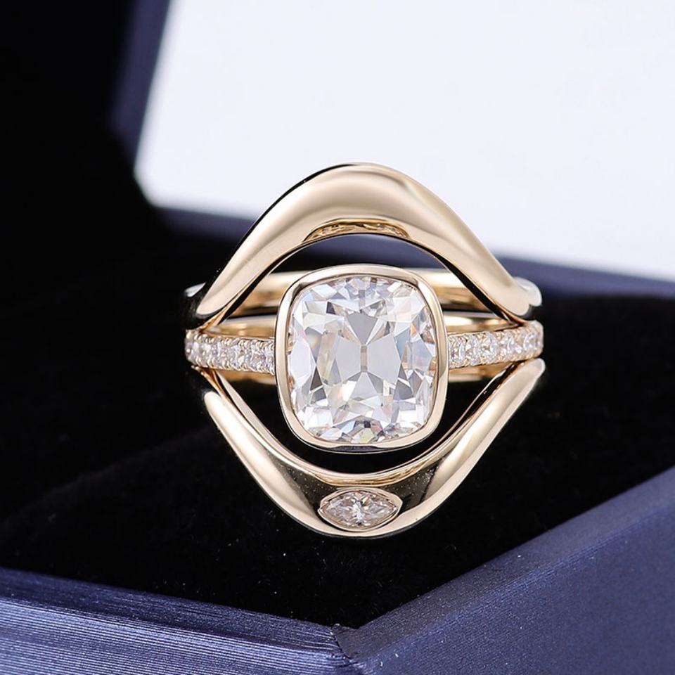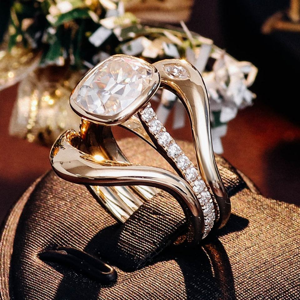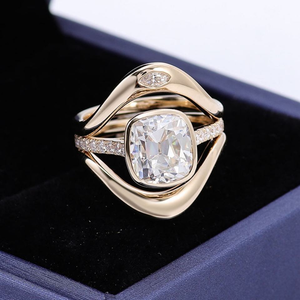 แหวนเพชรหรูหราสำหรับผู้ชาย แหวนแต่งงานทอง 10k แหวนหมั้นเพชรโมอิสซาไนต์ทรงคุชชั่น ของขวัญสำหรับงานปาร์ตี้