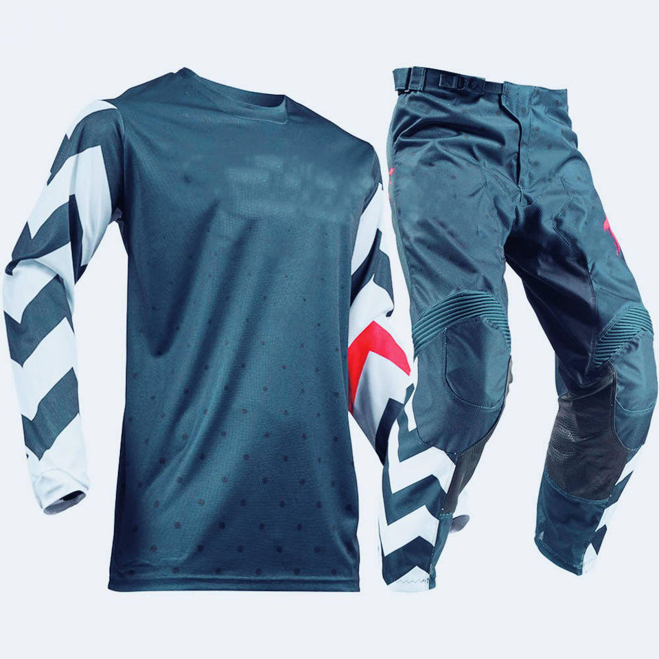 ชุดเสื้อเจอร์ซีย์และกางเกงมอเตอร์ครอสสำหรับผู้ชาย ชุดแข่งรถวิบาก MX ระดับมืออาชีพ ชุดขี่มอเตอร์ไซค์วิบากแบบออฟโรด