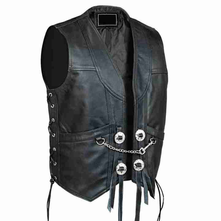 เสื้อกั๊กหนังวัวแท้สำหรับผู้ชายมอเตอร์ไซด์สำหรับผู้ชายเสื้อกั๊กหนังสีดำสำหรับนักขี่มอเตอร์ไซค์