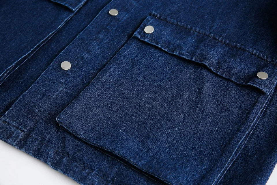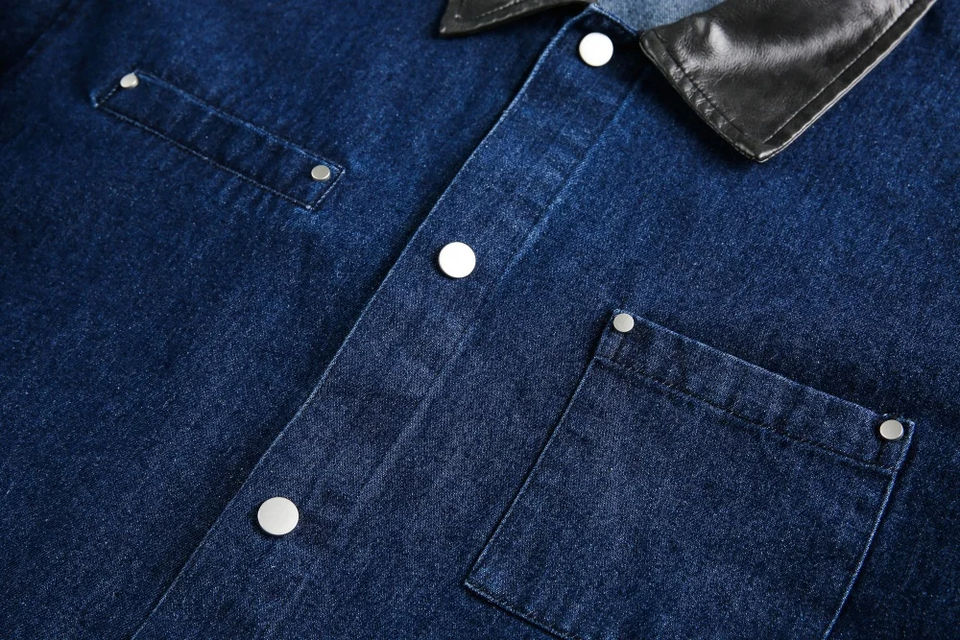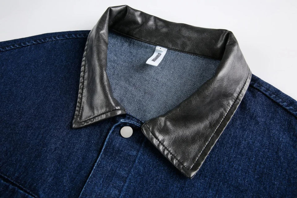 Product name:Mens Multi Pocket Denim Jacket with Leather Collar