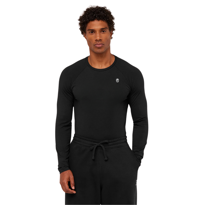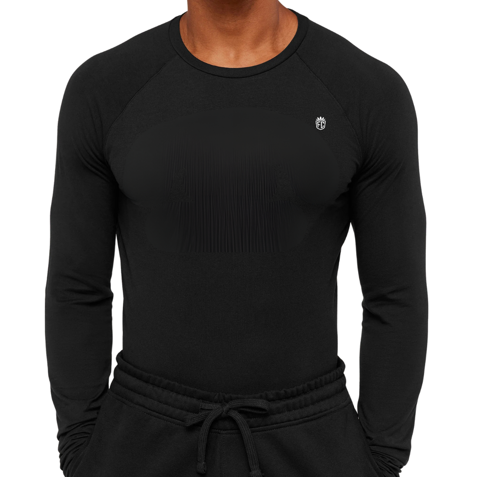 เสื้อยืดแขนยาวผู้ชายทรงเข้ารูป สีดำ สำหรับออกกำลังกาย เพาะกาย ฟิตเนส เทรนนิ่ง เสื้อกีฬา