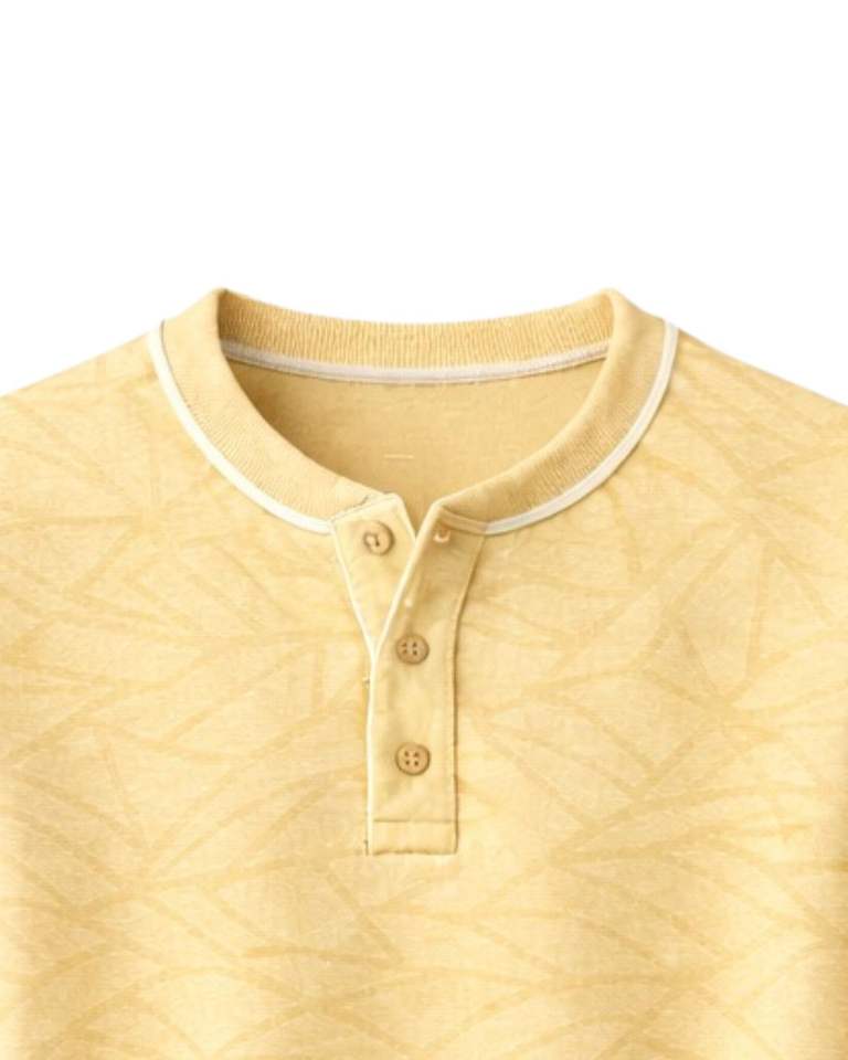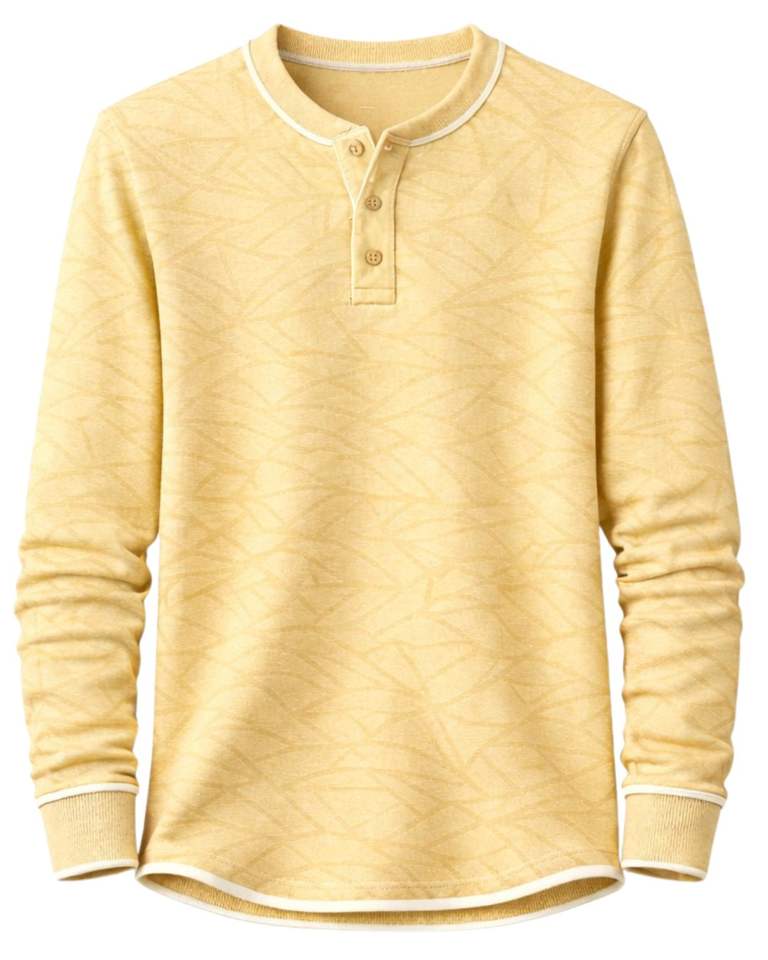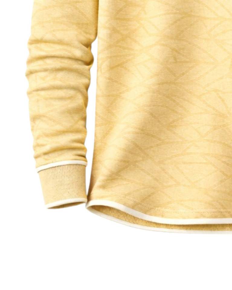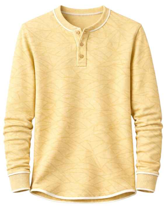 เสื้อสเวตเชิ้ตแขนยาวทรงเฮนลีย์พิมพ์ลายเรขาคณิตสีเหลืองมัสตาร์ดสำหรับผู้ชาย ผ้าเฟรนช์เทอร์รี่ ทรงปกติ สวมใส่สบาย เหมาะสำหรับฤดูหนาว