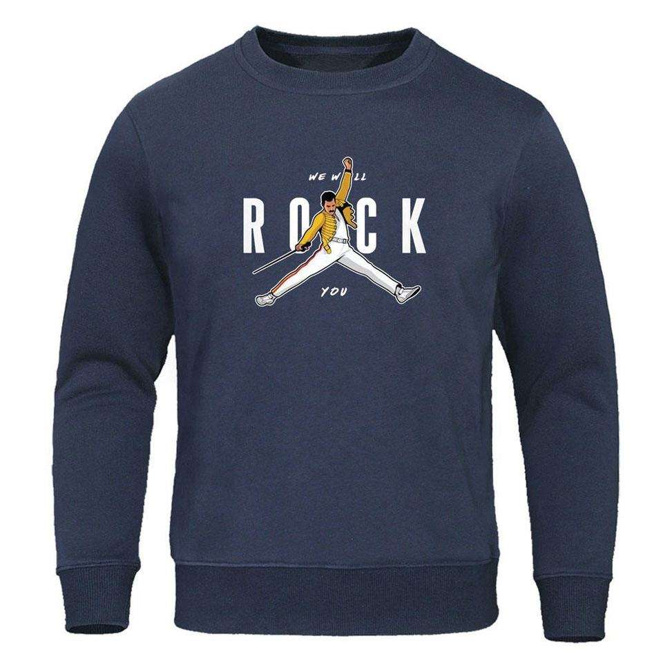 เสื้อสเวตเตอร์พิมพ์ลายร็อคสีกรมท่าสำหรับผู้ชายเสื้อสวมหัวผ้าฟลีซแบบลำลอง