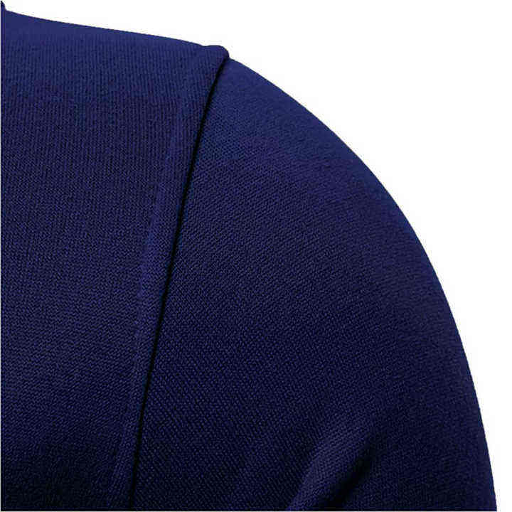 เสื้อฮู้ดผู้ชายสีน้ำเงินกรมท่าทรงเข้ารูป ผ้าฟลีซลำลอง สวมใส่สบาย แฟชั่นฤดูหนาว