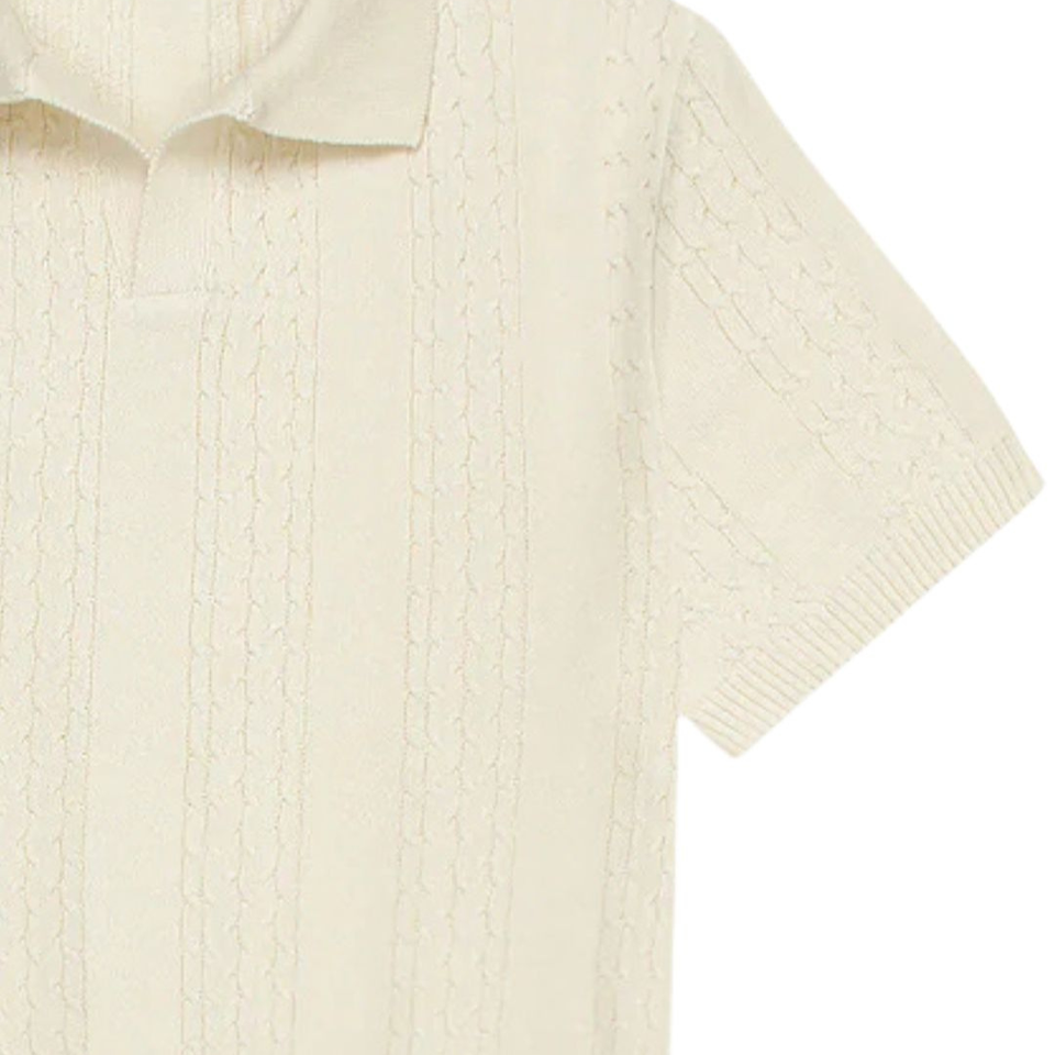 เสื้อโปโลถักลายเคเบิลสำหรับผู้ชาย ผ้าคอตตอนพรีเมียม แขนสั้น ทรงคลาสสิก สวมใส่สบาย สไตล์ลำลองและสมาร์ท