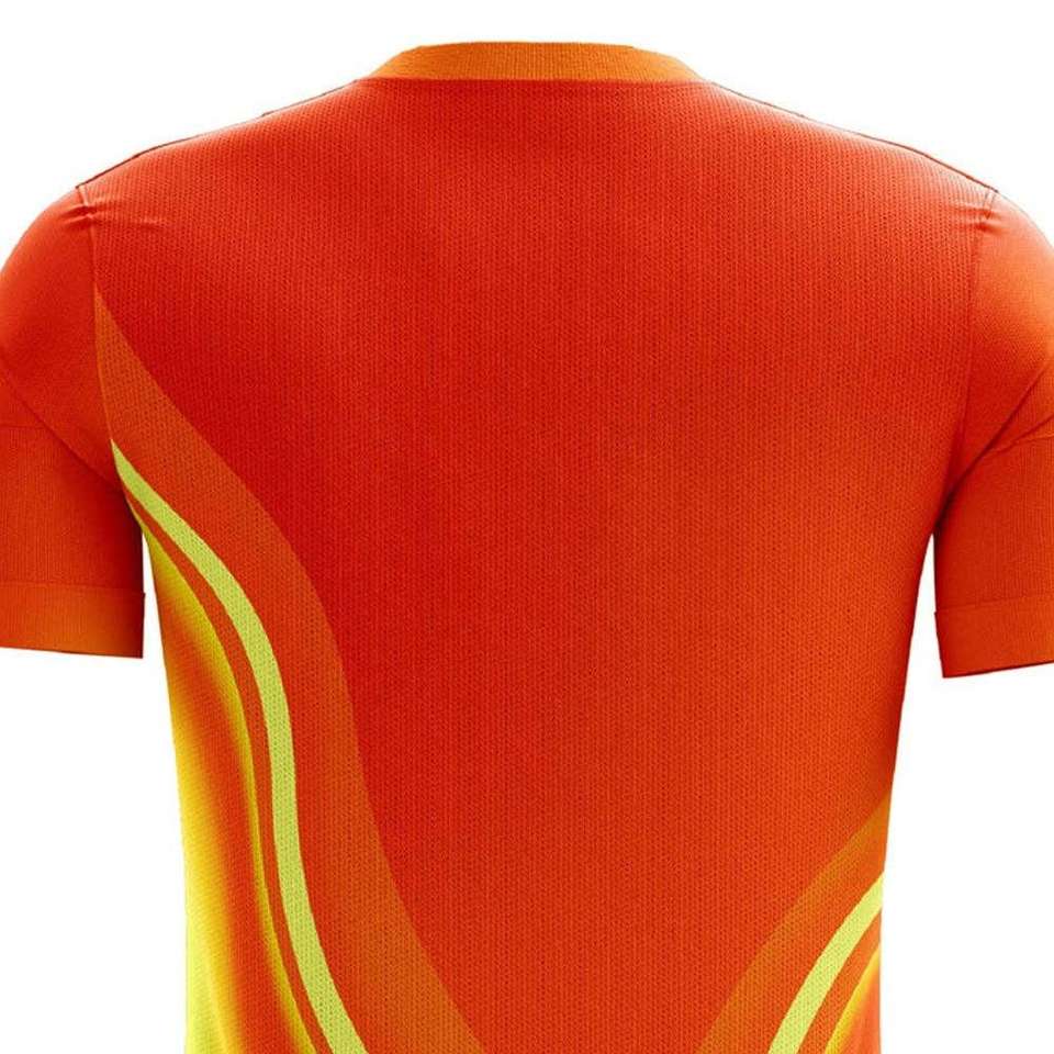 เสื้อกีฬาผู้ชายสีส้มไล่เฉดสี แขนสั้น ระบายอากาศได้ดี น้ำหนักเบา ผลิตจากโพลีเอสเตอร์ ดีไซน์แบบซับลิเมชั่น