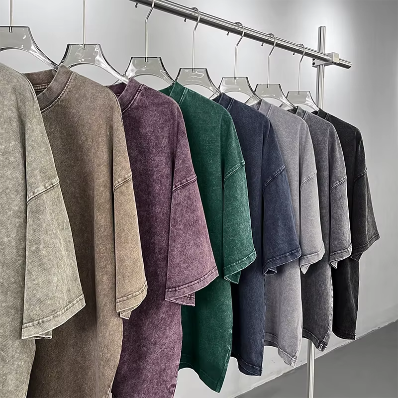 เสื้อยืดโอเวอร์ไซส์ผู้ชาย ล้างสีแบบแอซิดวอช วินเทจ เนื้อผ้าหนา 100% คอตตอน สตรีทแวร์ ทรงไหล่ตก กันยับ ผู้ผลิต OEM