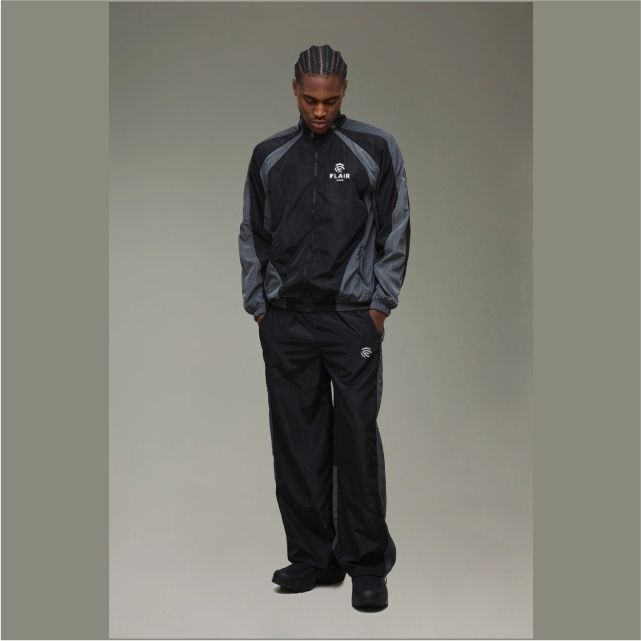 ชุดวอร์มมีฮู้ดโอเวอร์ไซส์ผู้ชายมีสีดำและสีเทา