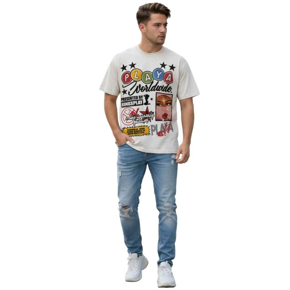 เสื้อยืดโอเวอร์ไซส์ลายกราฟิกสตรีทแวร์สำหรับผู้ชาย แขนสั้น ผ้าฝ้าย พิมพ์ลายป๊อปอาร์ต ดีไซน์โดดเด่น แฟชั่นลำลอง ใส่ได้ทุกวัน