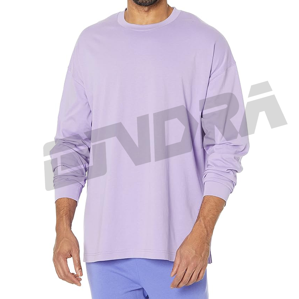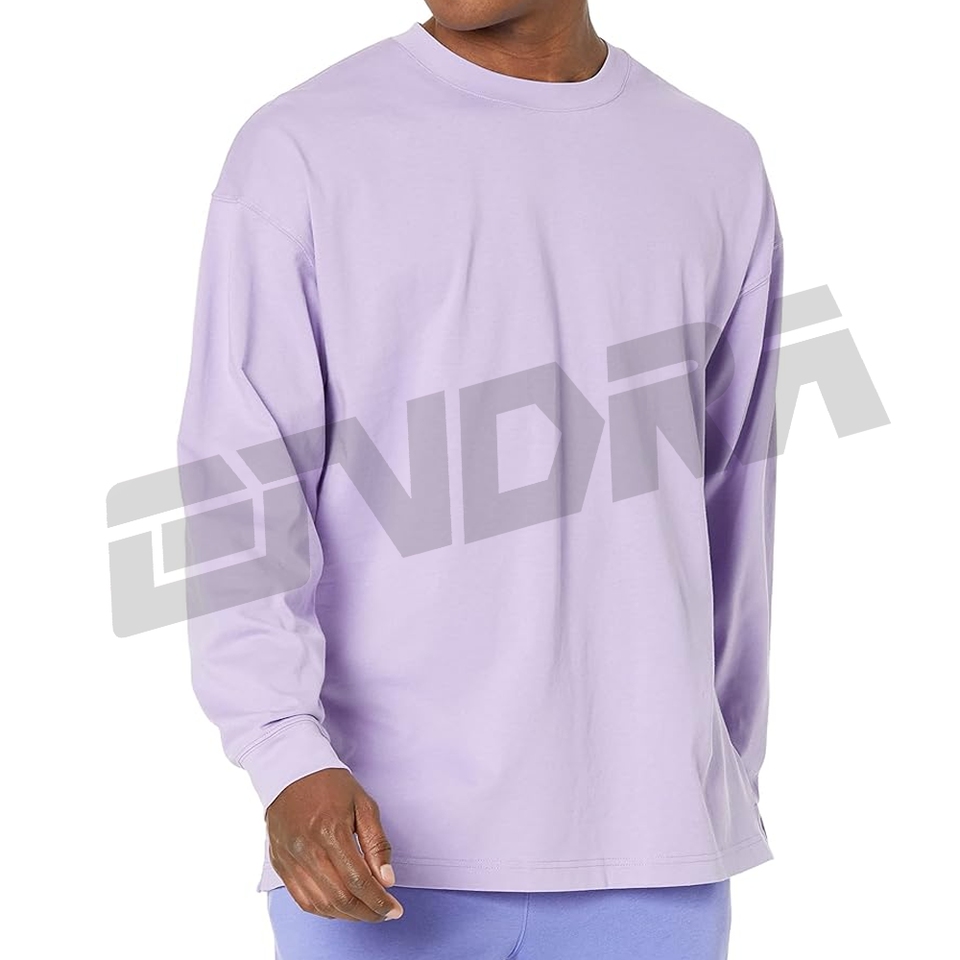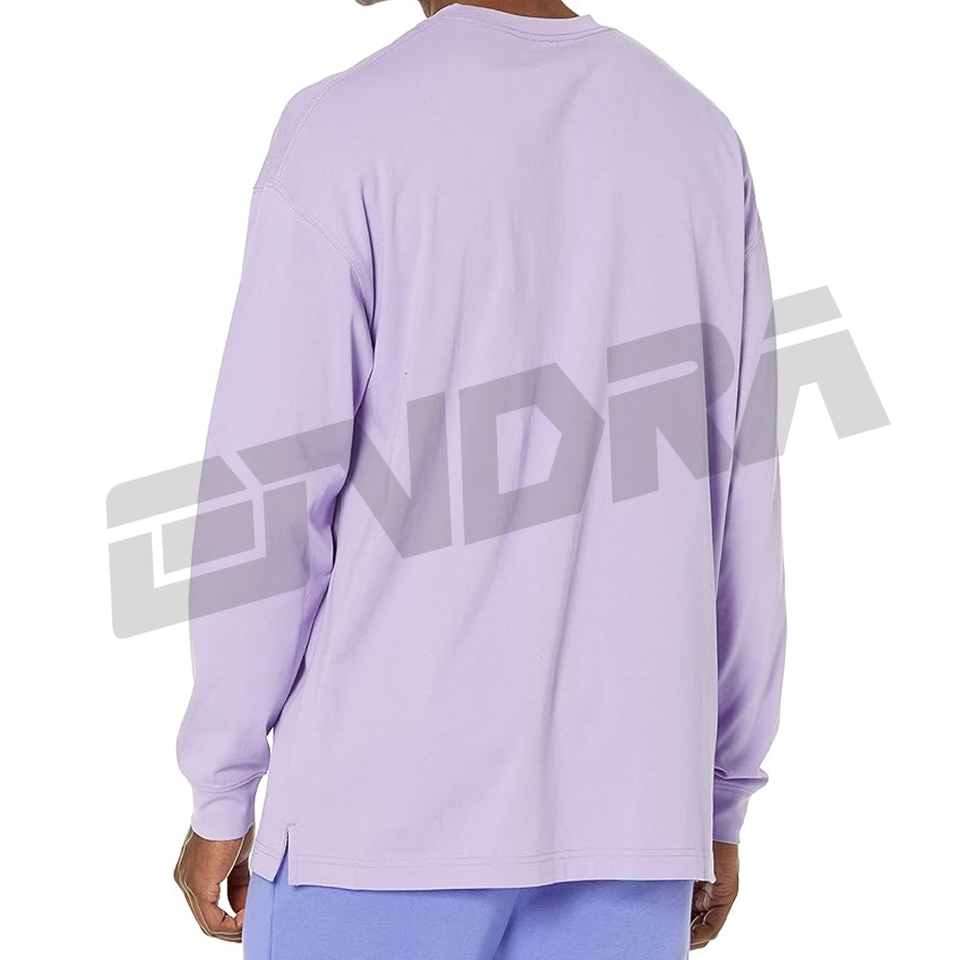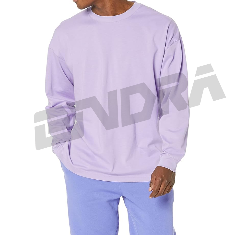 เสื้อยืดแขนยาวโอเวอร์ไซส์สำหรับผู้ชายสีม่วงเสื้อสตรีทแวร์ทรงหลวมคอลูกเรือแบบลำลองเครื่องแต่งกายนุ่มมีสไตล์