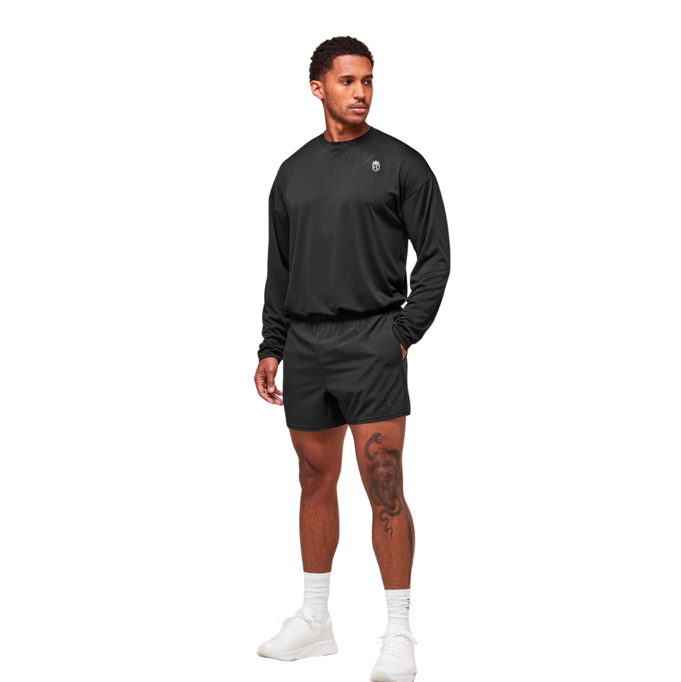 เสื้อยืดแขนยาวผู้ชายไซส์ใหญ่ สีดำ ทรงหลวม ระบายอากาศได้ดี เหมาะสำหรับใส่ลำลอง ออกกำลังกาย เล่นกีฬา สตรีทแวร์
