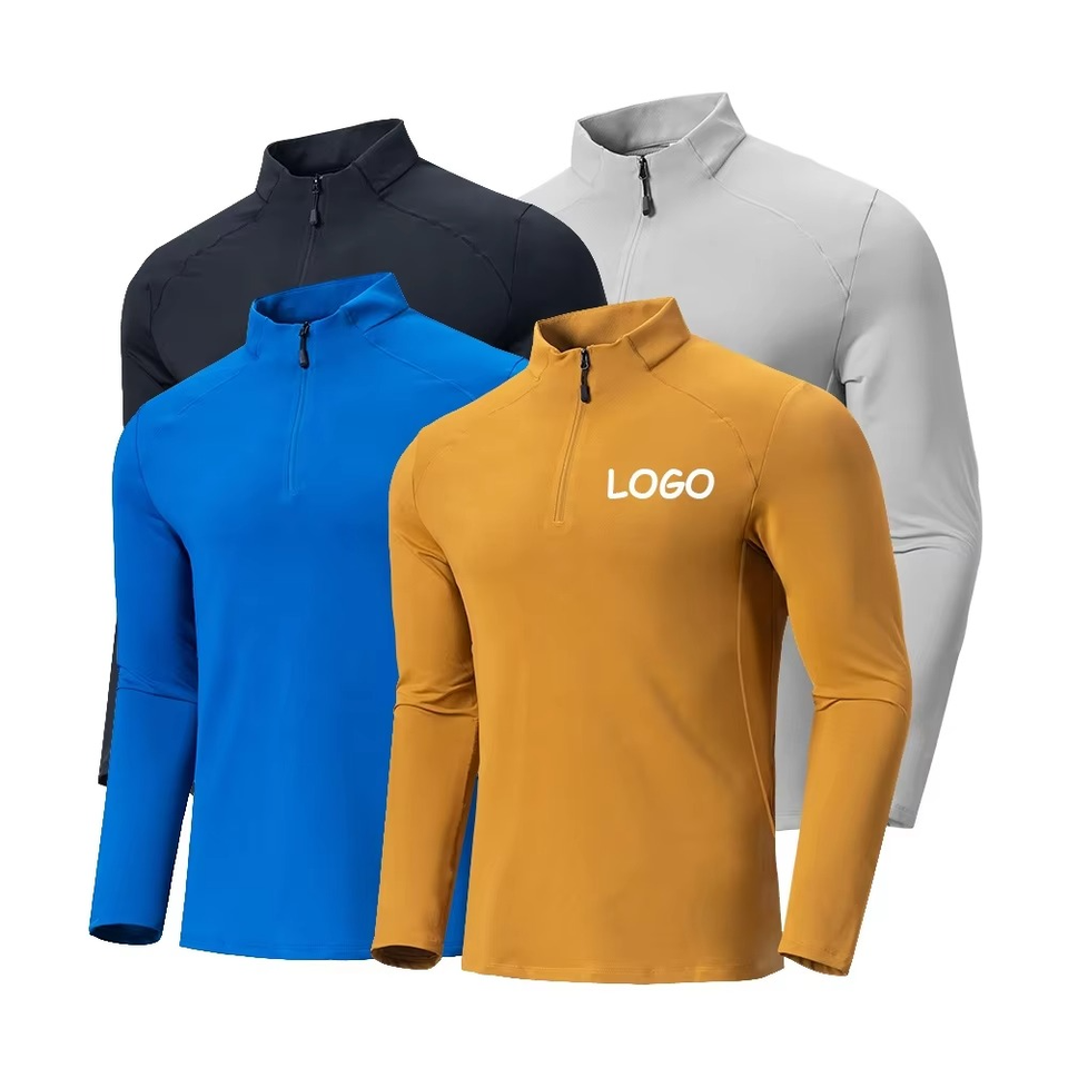 เสื้อกีฬาวิ่งแห้งเร็วสำหรับผู้ชายเสื้อกีฬาแขนยาวสำหรับใส่เล่นกอล์ฟเสื้อสวมหัวมีซิปปิด1/4ส่วน