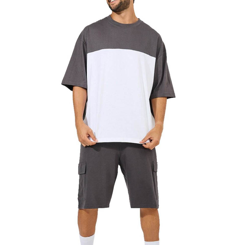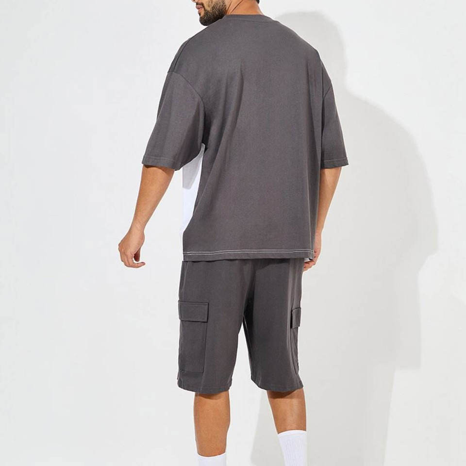 ชุดกีฬาบุคลิกภาพสำหรับผู้ชาย ชุดฤดูร้อน 2 ชิ้น เสื้อยืดแขนสั้นและกางเกงขาสั้น ชุดลำลองฤดูร้อนทันสมัย น้ำหนักเบา