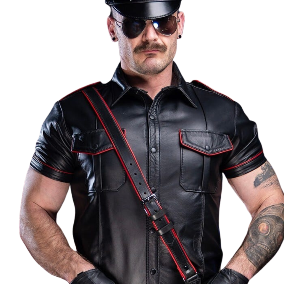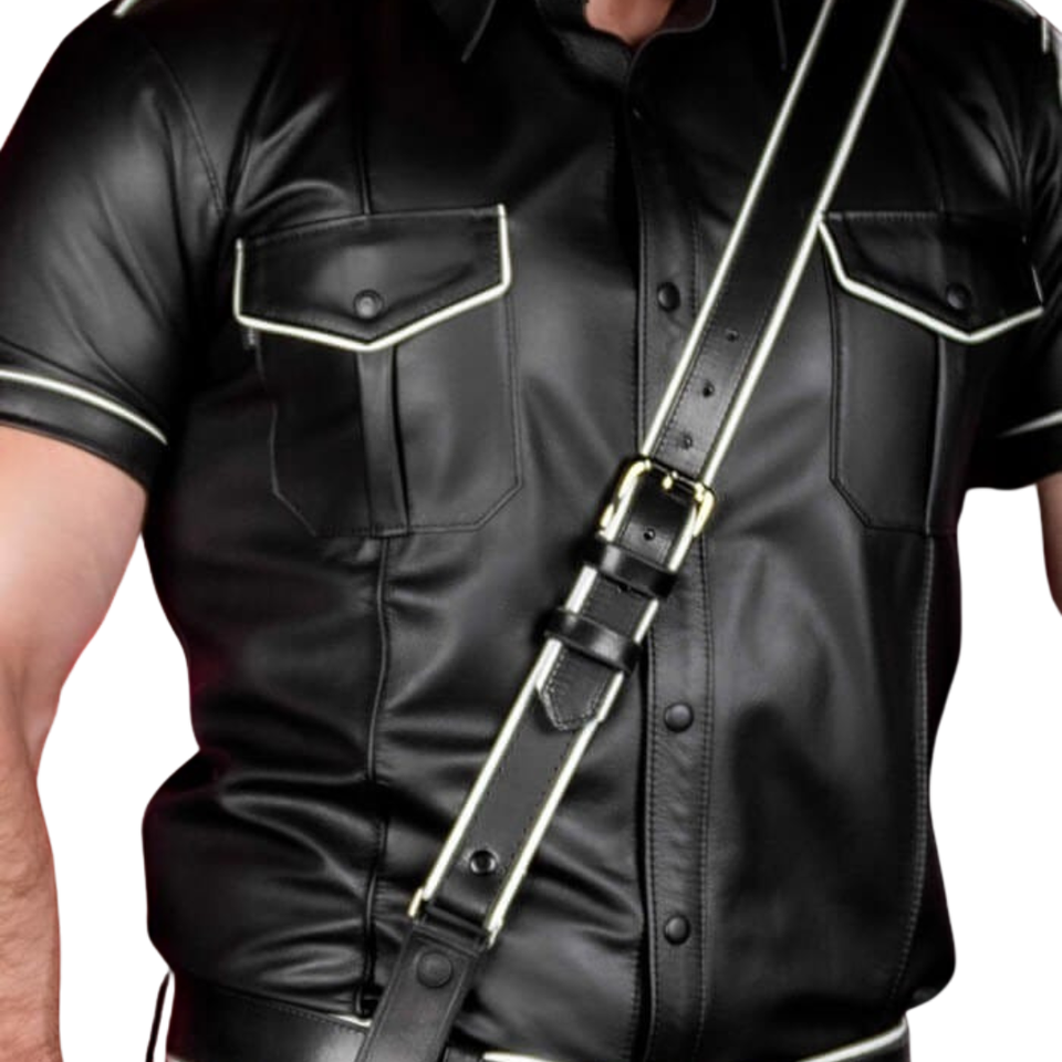 สายสะพายไหล่หนังแซม บราวน์แบบมีแถบสำหรับผู้ชาย มีให้เลือก 7 สี ปรับขนาดได้ หนังคุณภาพพรีเมียม เหมาะสำหรับใส่ไปคลับ
