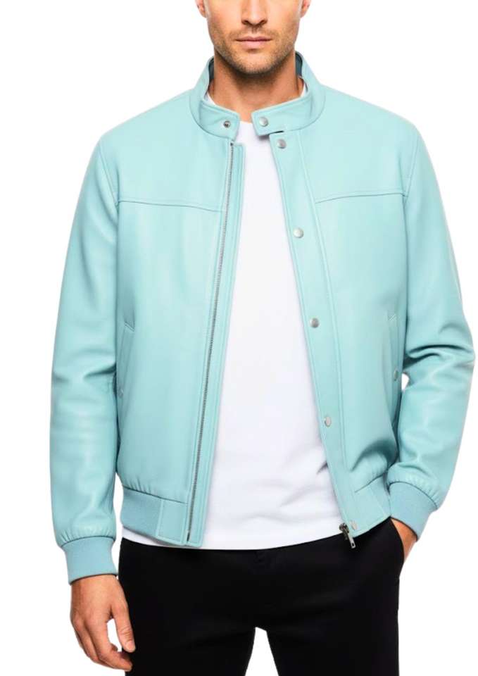 แจ็คเก็ตบอมเบอร์หนังแท้พรีเมียมสำหรับผู้ชาย คอตั้ง มีสีให้เลือกตามสั่ง