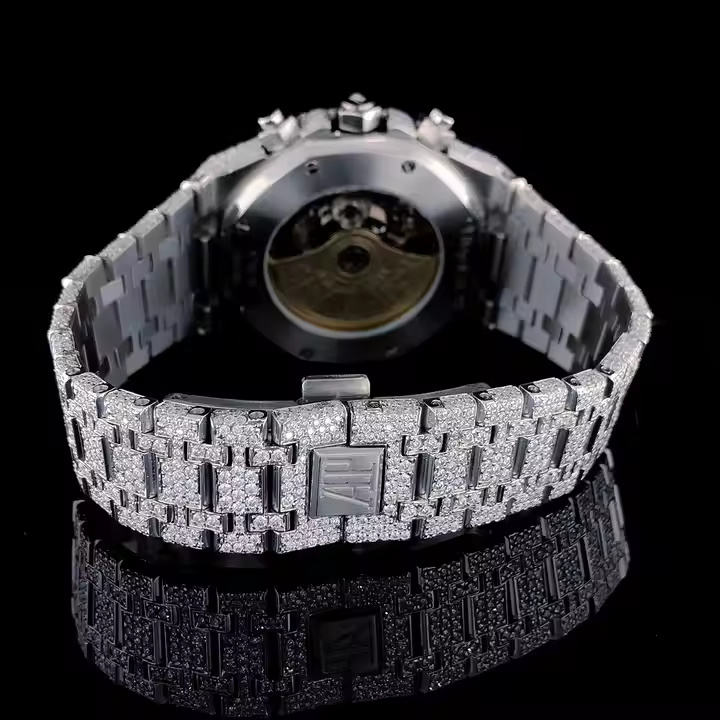 นาฬิกาเพชรมอยส์ซอไนท์ระดับพรีเมียมของผู้ชายนาฬิกาสุดหรูสไตล์ฮิปฮอปสายสแตนเลสควอตซ์5มม.
