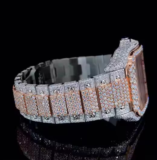 นาฬิกาเพชรมอยส์ซอไนท์สำหรับผู้ชายนาฬิกาประดับเพชรหน้าปัดเย็นสุดหรูพร้อมสายสแตนเลสและดีไซน์ฮิปฮอป