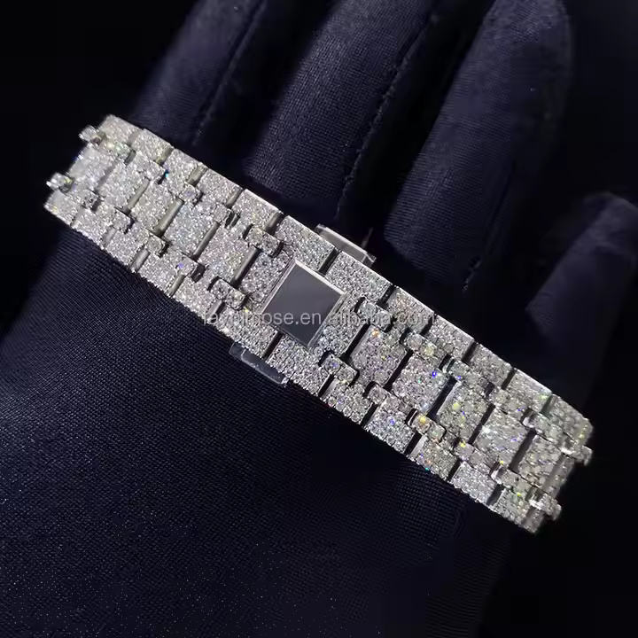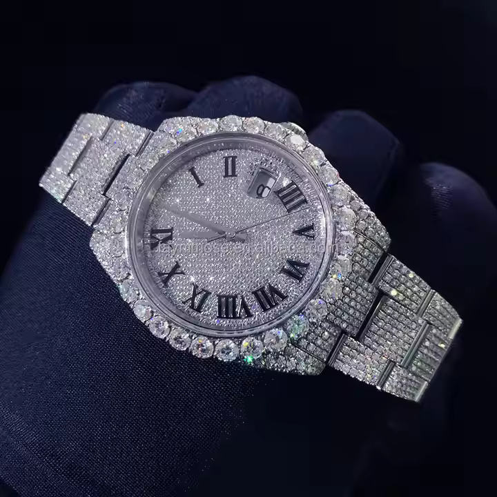Mens Premium Moissanite Diamond Watch Fully Iced Out Bling Timepiece with Stainless Steel Strap and Luxury Hip Hop Design