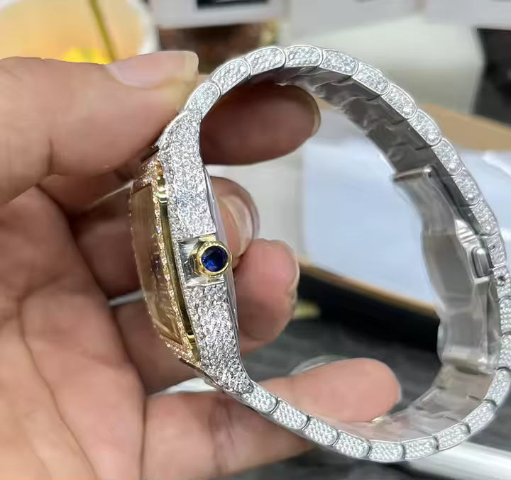 นาฬิกาเพชรโมอิสระดับพรีเมี่ยมสำหรับผู้ชายสายสแตนเลสและดีไซน์ฮิปฮอปหรูหรา