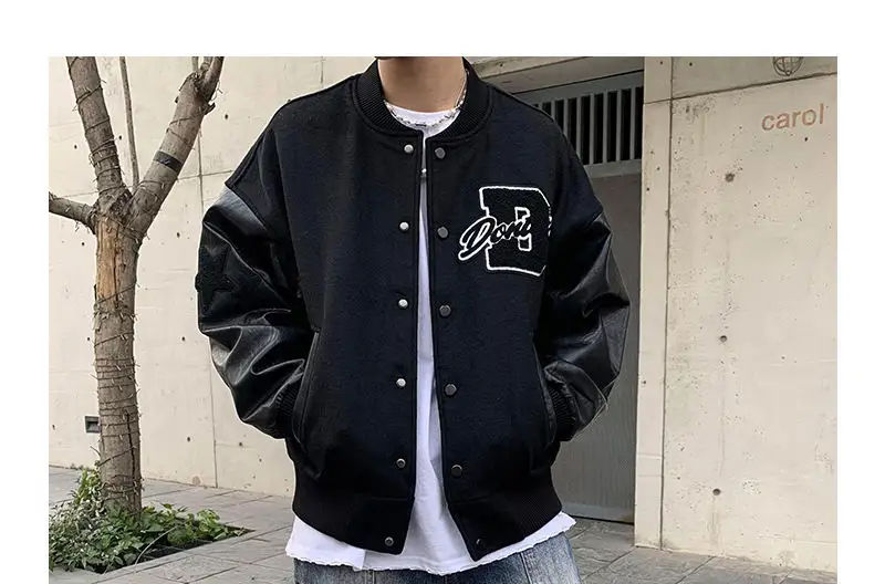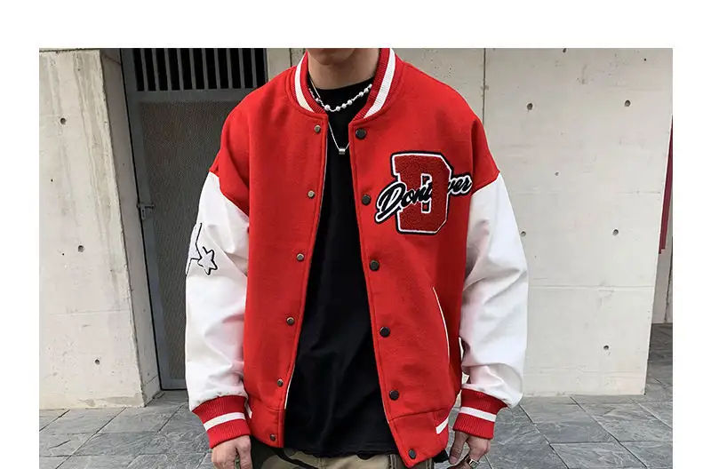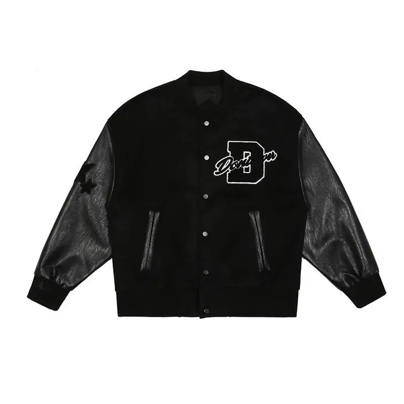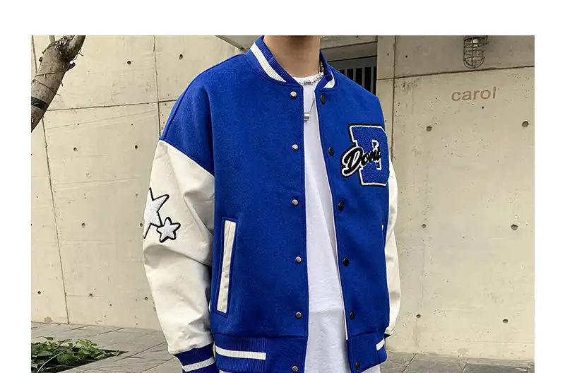 เสื้อแจ็คเก็ตวาร์ซิตี้พรีเมียมสำหรับผู้ชาย สไตล์เลตเตอร์แมน แบบคอลเลจ บอมเบอร์ คอตั้ง ปักลายด้านหน้า พร้อมป้ายทีมแบบกำหนดเอง เสื้อกันหนาวสำหรับฤดูหนาว