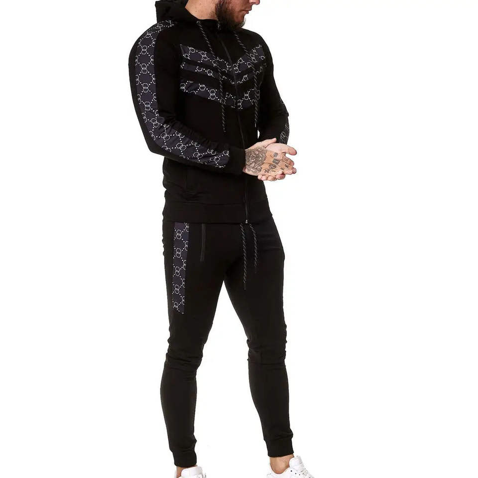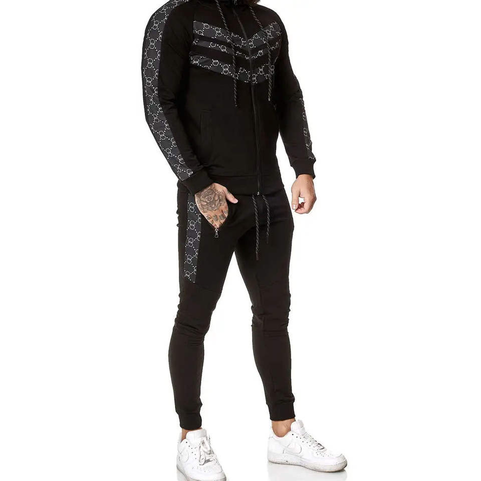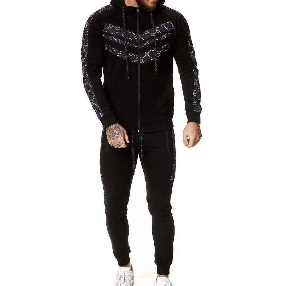ชุดวอร์มพิมพ์ลายสำหรับผู้ชาย เสื้อฮู้ดซิปเต็มตัว กางเกงจ็อกเกอร์ทรงปกติ ชุดกีฬาสำหรับฝึกซ้อม ระบายอากาศได้ดี เป็นมิตรกับสิ่งแวดล้อม