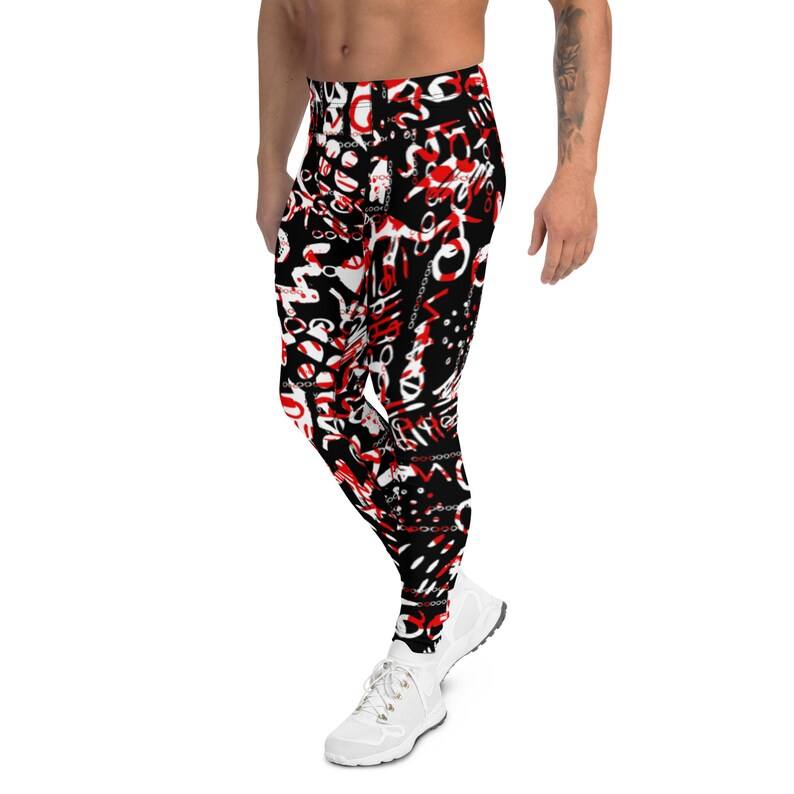 กางเกงขายส่งลายพิมพ์สำหรับผู้ชาย | กางเกงลำลองสีดำขาวแดง โพลีเอสเตอร์ 100% ป้องกันการเป็นขุย