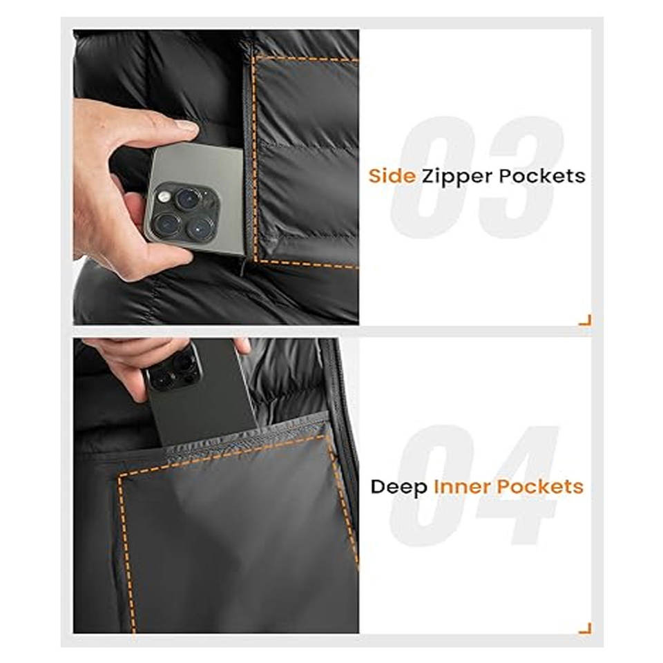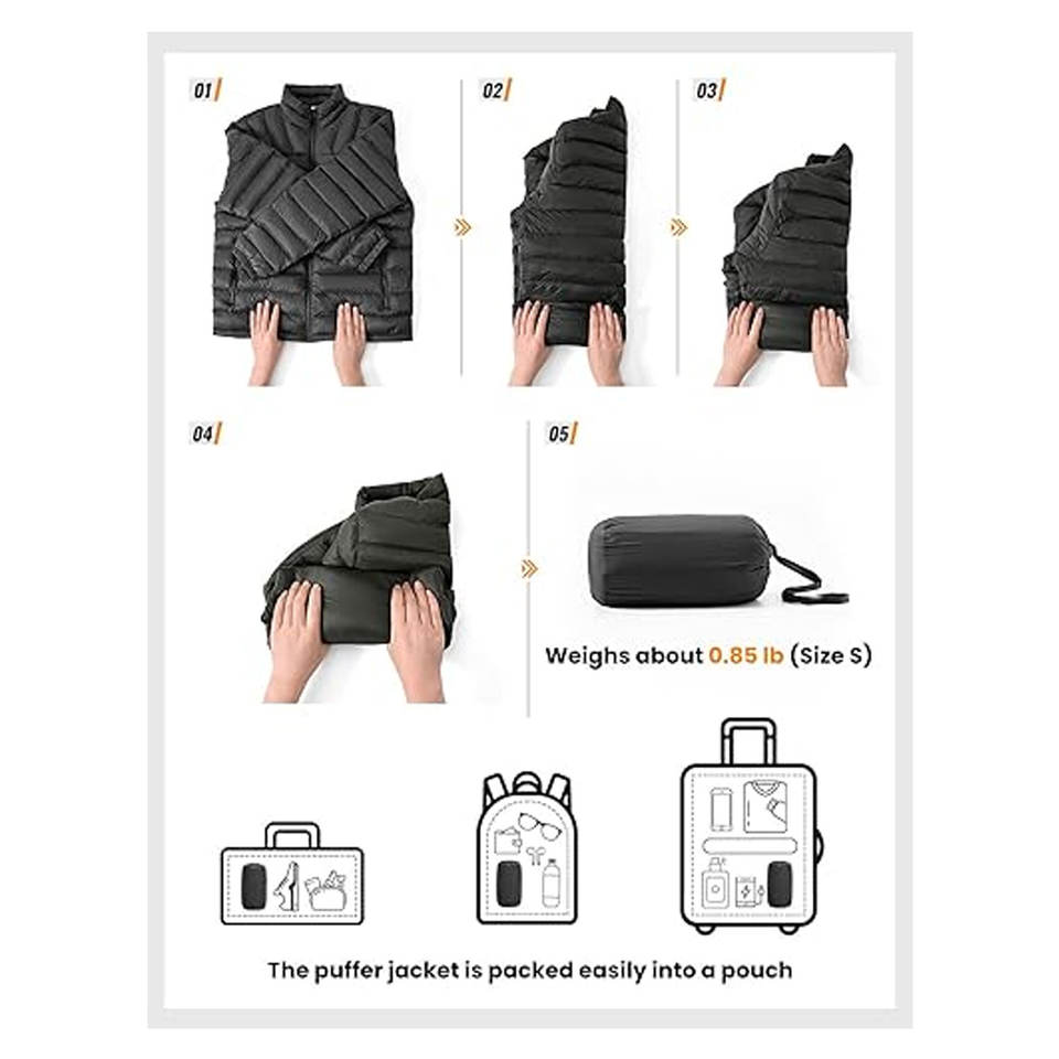 เสื้อแจ็คเก็ตพัฟเฟอร์บุรุษ น้ำหนักเบา พับเก็บได้ กันน้ำ อุ่นสบาย เหมาะสำหรับฤดูหนาว เดินทาง เล่นสกี ลำลอง และกิจกรรมกลางแจ้ง