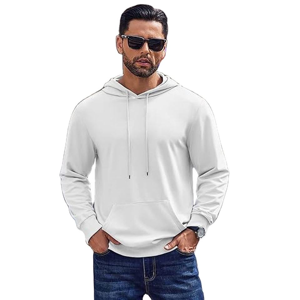 เสื้อมีฮู้ดสวมหัวมีสไตล์สำหรับผู้ชายเสื้อมีฮู้ดน้ำหนักเบาแขนยาวผ้าสามผสมน้ำหนักเบาเสื้อมีฮู้ดแฟชั่นกระเป๋าด้านหน้า