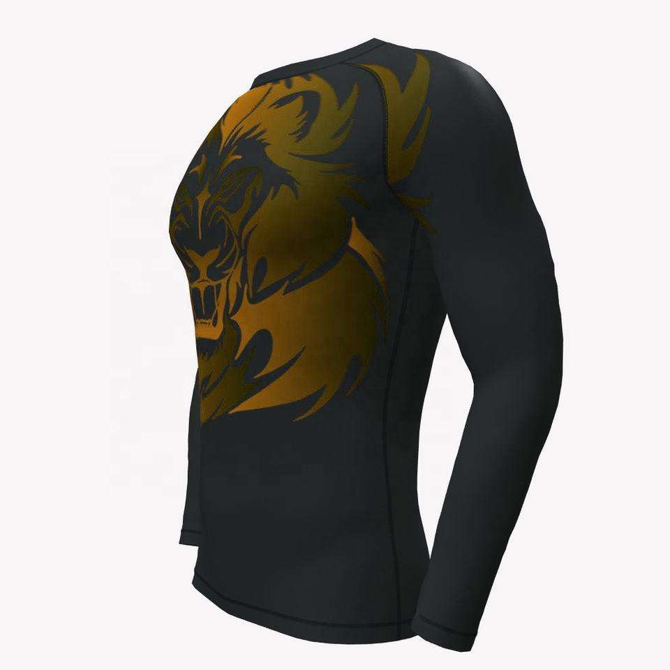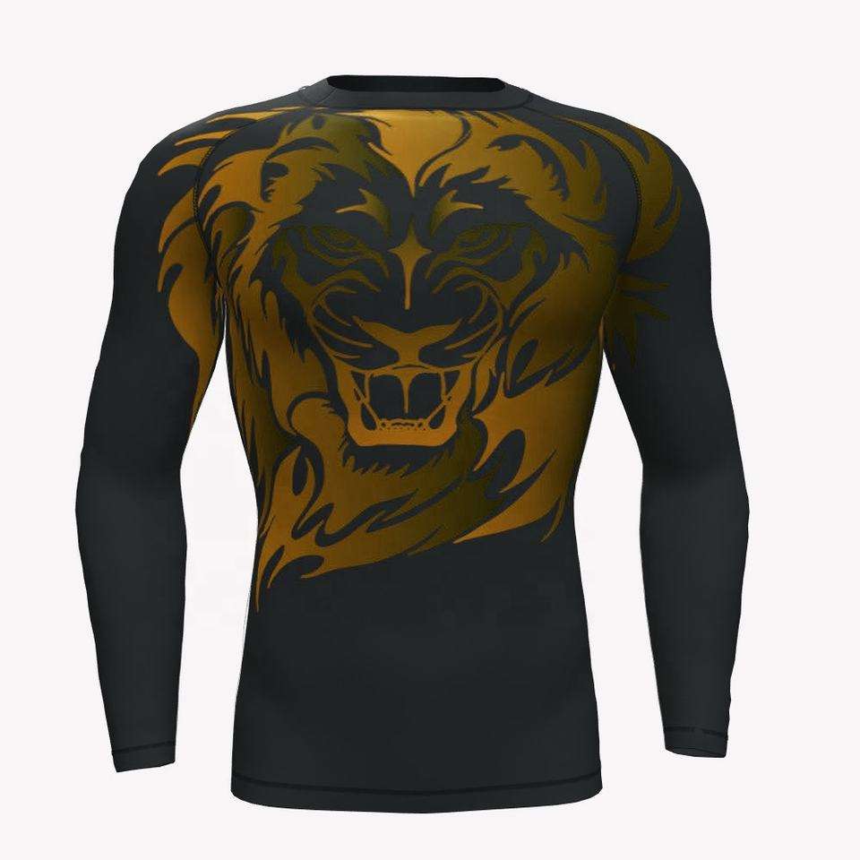 เสื้อรัดกล้ามเนื้อแขนยาวสำหรับผู้ชาย สีดำลายสิงโตสีทอง เหมาะสำหรับออกกำลังกาย ฟิตเนส ฝึกซ้อม บีเจเจ เอ็มเอ็มเอ ชุดกีฬาประสิทธิภาพสูง